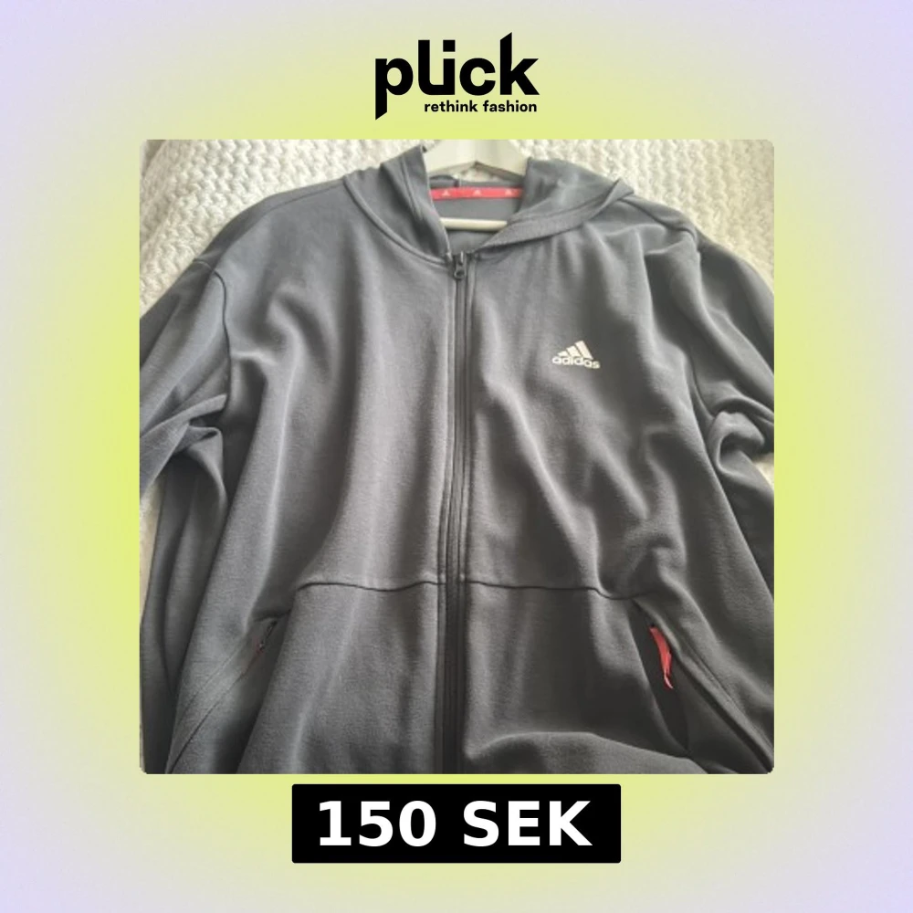 Svart hoodiejacka från Adidas med dragkedja framtill och vit logga på bröstet. Jackan har huva och långa ärmar, samt fickor på sidorna. Perfekt för träning eller chill.