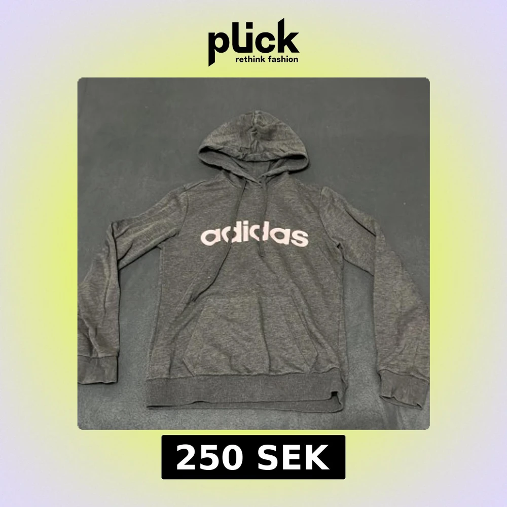Snygg mörkgrå hoodie från Adidas med stort rosa logotryck på bröstet och broderad logga på ärmen. Tröjan har huva med snörning, känguruficka och långa ärmar. Perfekt för en chill och sportig look.