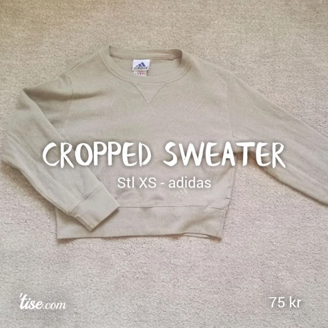 En snygg croppad tröja från adidas! Går precis till under revbenen, passar jättebra till midjebyxor! Sitter liite löst på mig, mina mått är Bröst 95 Midja 75 Höft 87 Bor du i norrköping kan vi mötas upp!😊