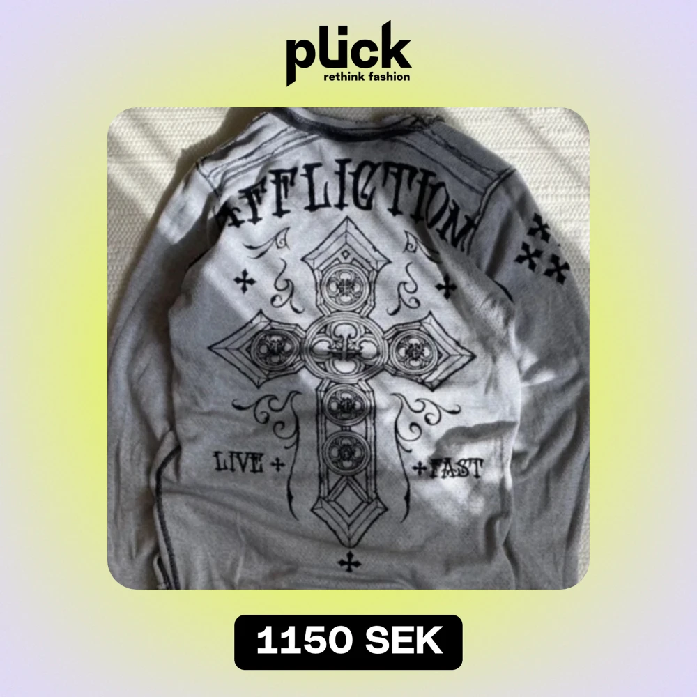 As cool affliction tröja som är ”dubbeldesign”. Alltså ifall man vänder den ut o in är det annat färg och design. Basically två tröjor i en. Några frågor eller ngt skriv privat! Eller för fler bilder! Den är SÅKLART äkta