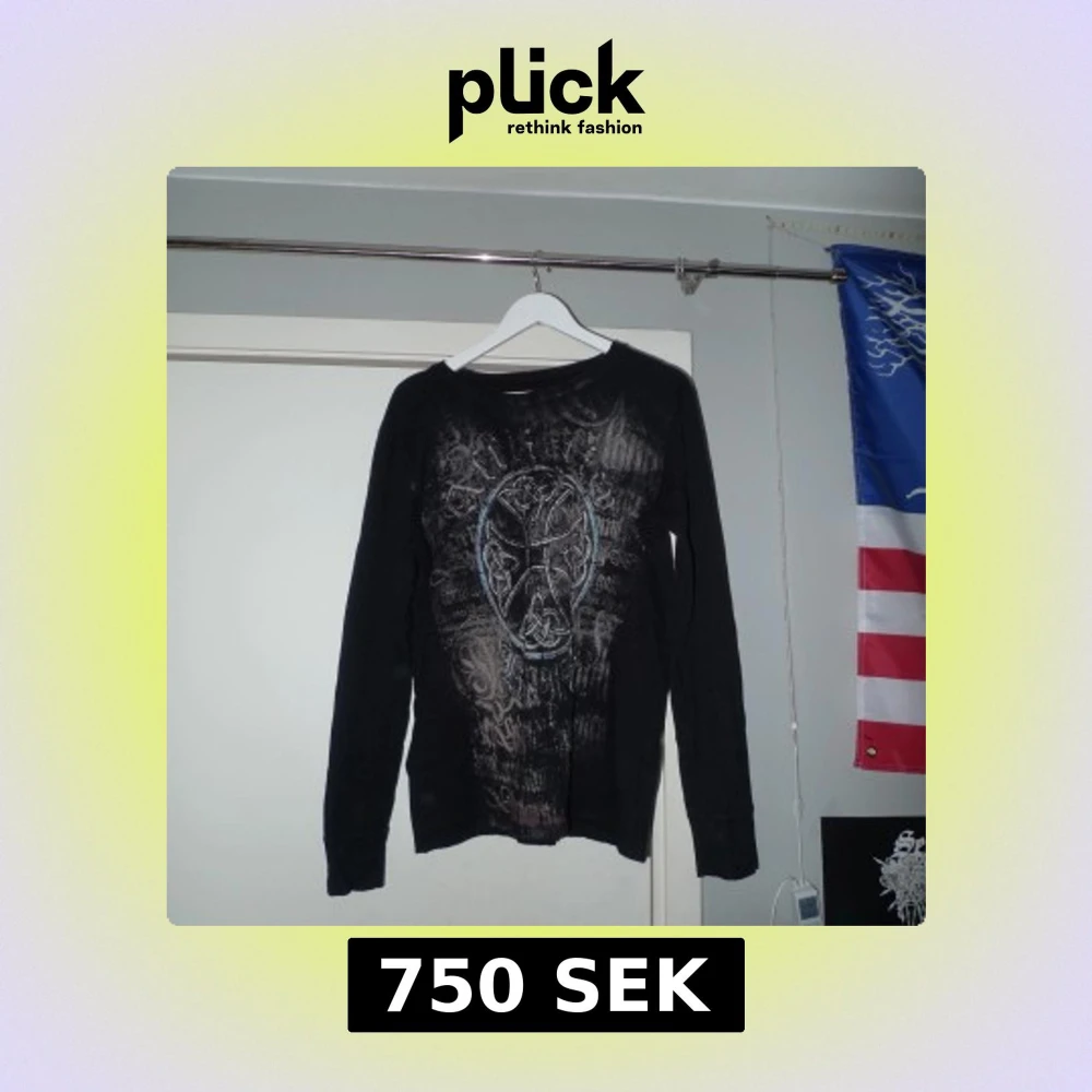 Svart affliction longsleeve med brun/gråa detaljer samt blåa som glänser. Storlek L #swag