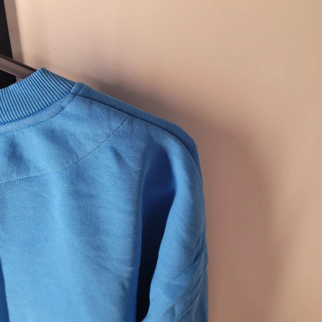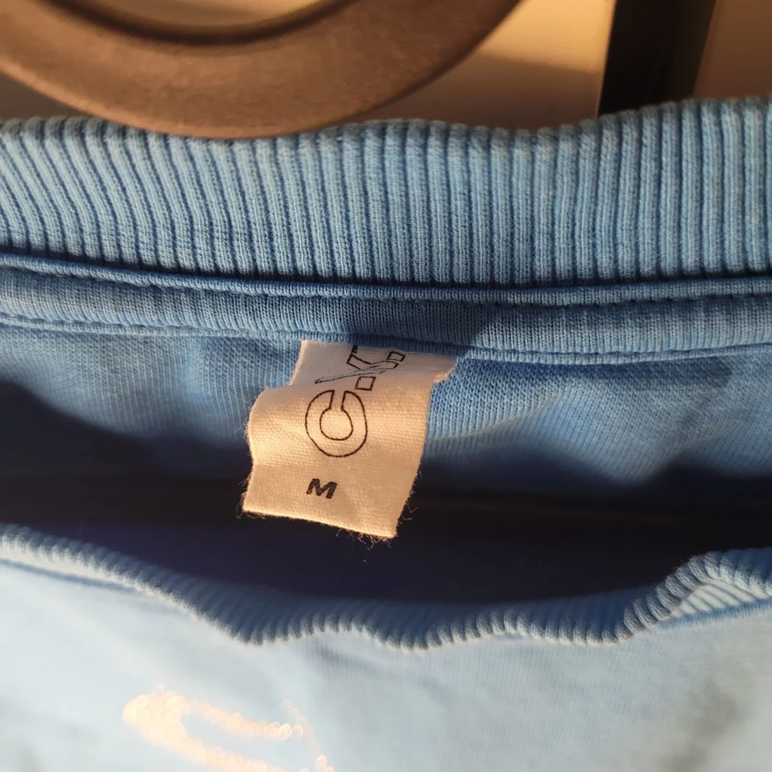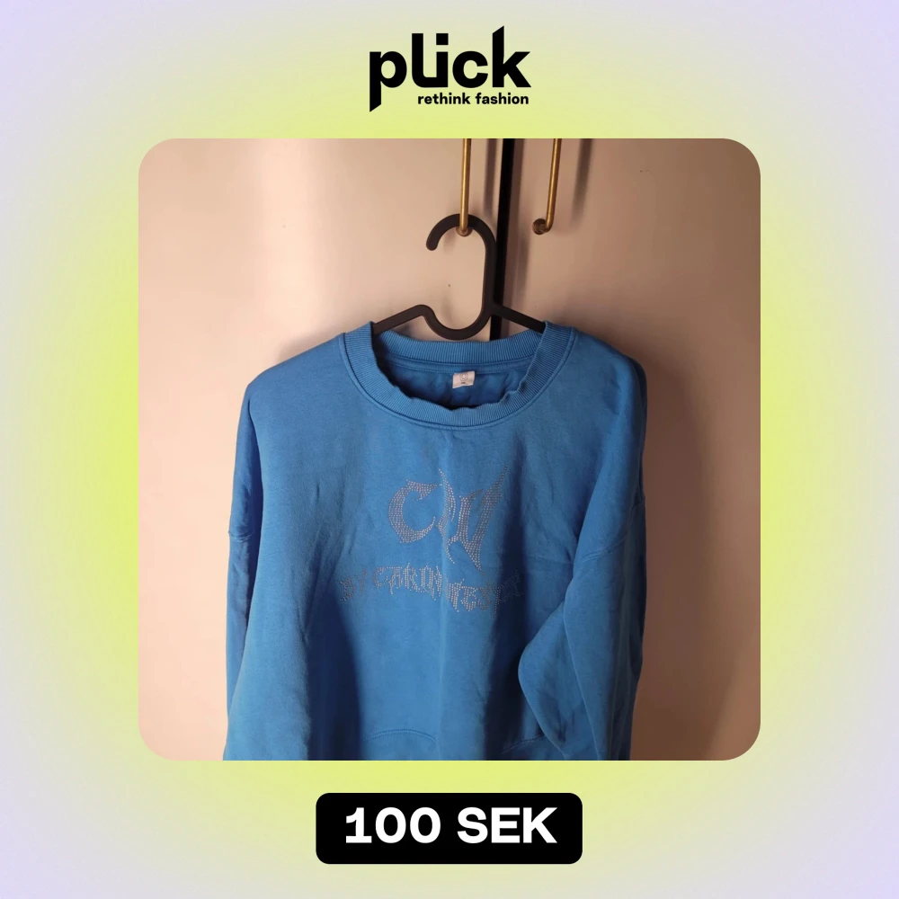 Säljer en snygg blå sweatshirt i storlek M. Tröjan har coola strassdetaljer på framsidan som ger den en unik look. Perfekt för en avslappnad stil eller att glamma upp vardagen. Den är i bra skick och redo för nya äventyr!