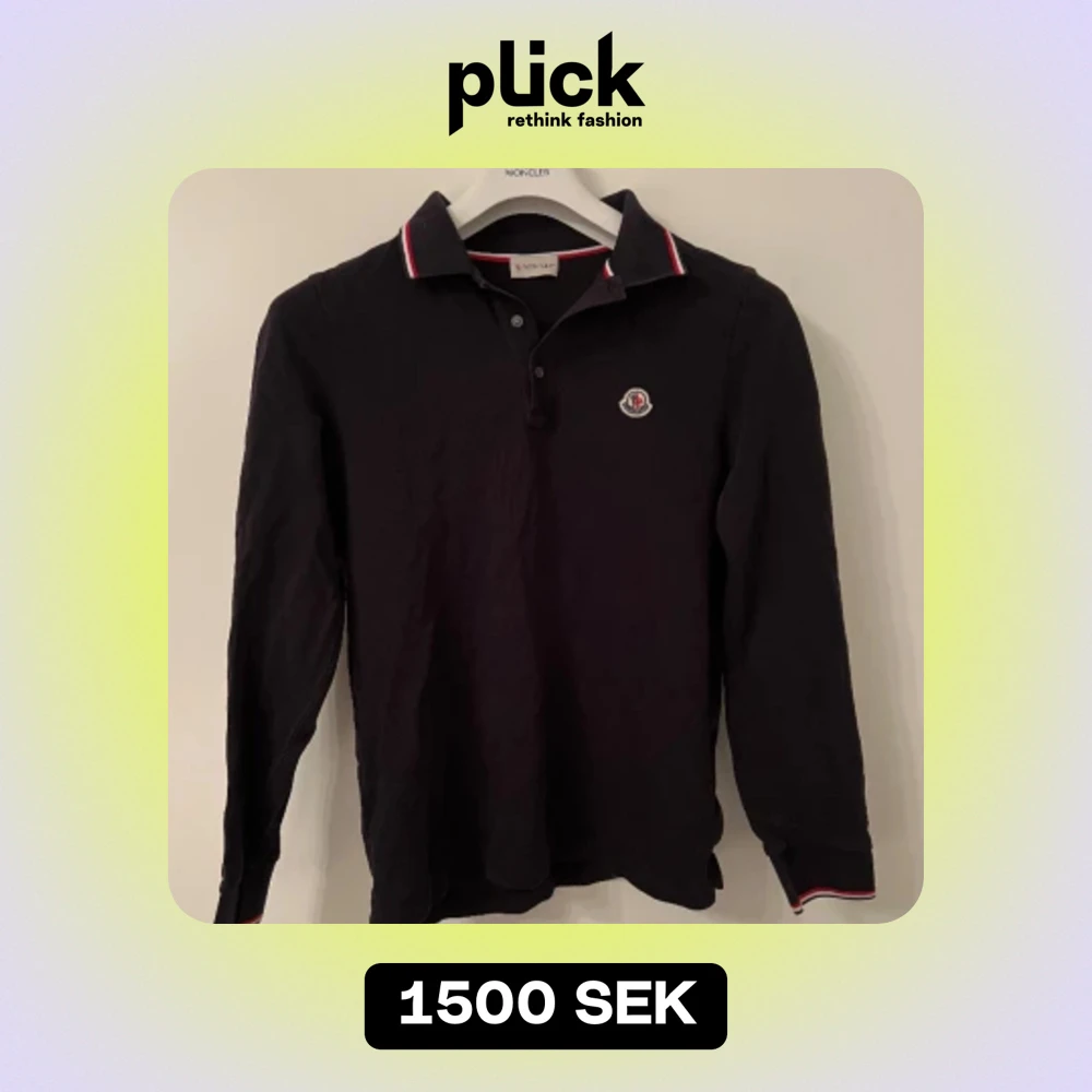 Svart långärmad pikétröja från Moncler, använt skick och väl omhändertagen. Nypris 3.910:- säljer för 1.100:-