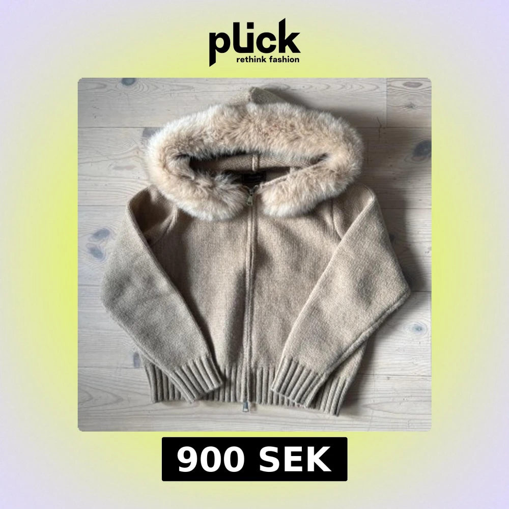 Beige stickad hoodie från Alessa med dragkedja och stor avtagbar huva kantad med mjuk päls. Tröjan har ribbade muddar och nederkant, samt en mysig och loose passform. Perfekt för kyliga dagar när du vill vara både varm och snygg. 100% Wool blend. Tröjan aldrig använd, den var för stor för min dotter. Nypris: 1200 kr