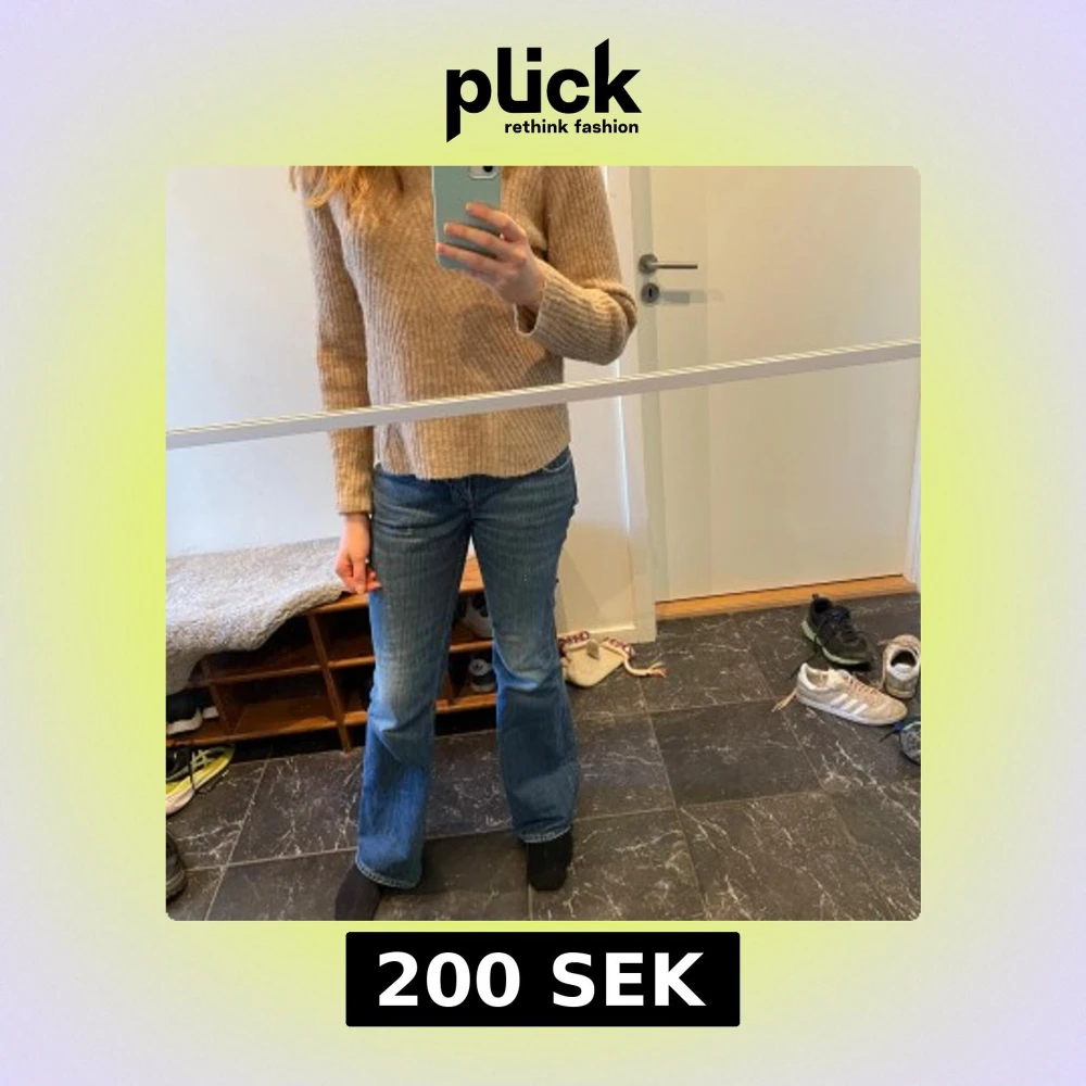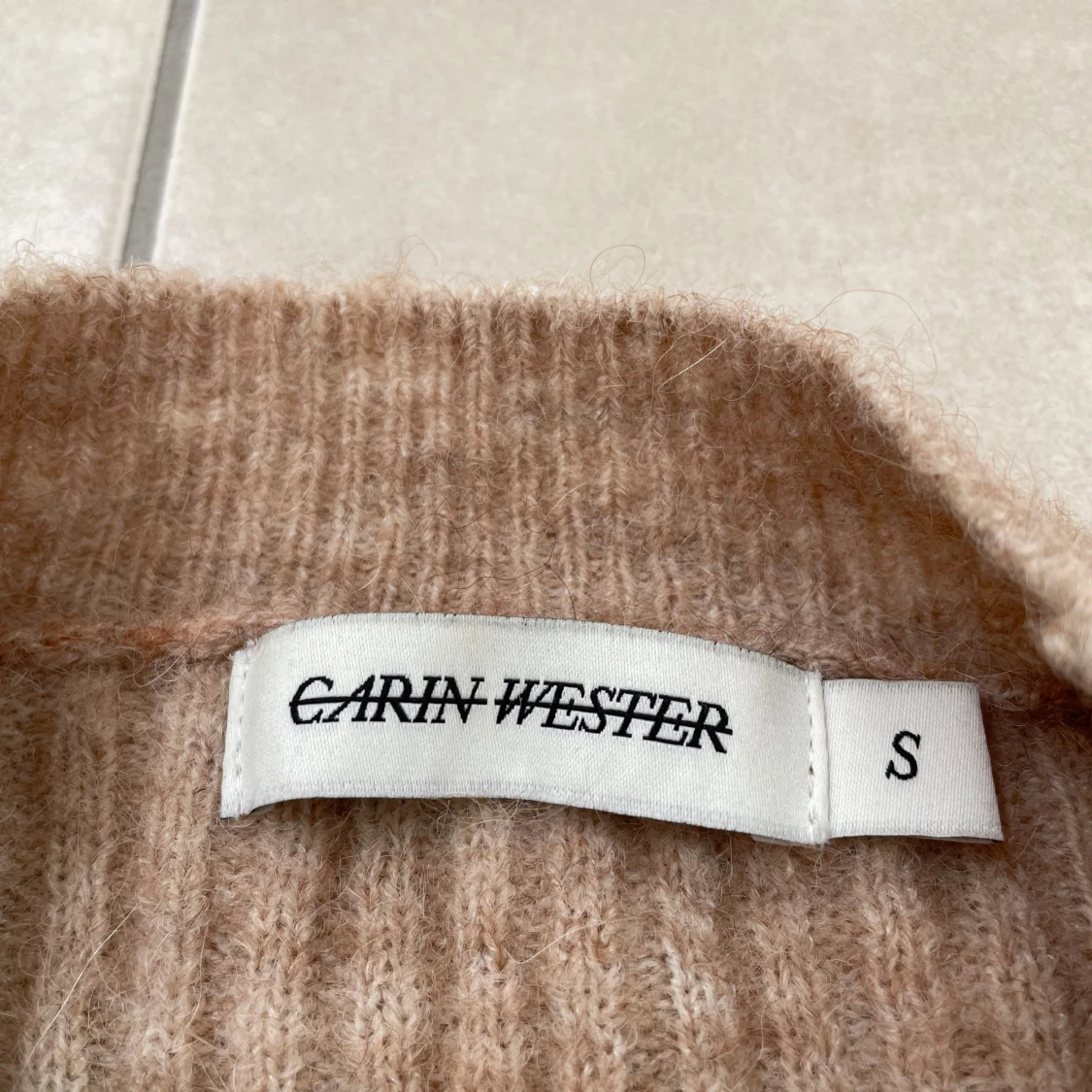 Säljer en fin beige stickad tröja från Carin Wester. Tröjan har ett ribbat mönster och långa ärmar, perfekt för lite kyligare dagar nu på våren. Den är i storlek S och passar utmärkt till både jeans och kjol. 30% alpacka, 21%ull, 37%polyamid, 7% akryl och 5% elastan