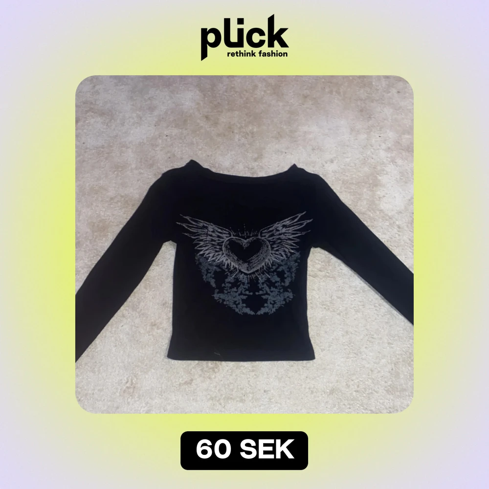 Snygg svart långärmad topp med ett coolt hjärtmönster och vingar på framsidan. Perfekt för en edgy look. Toppen har en tight passform och är croppad för en modern stil.