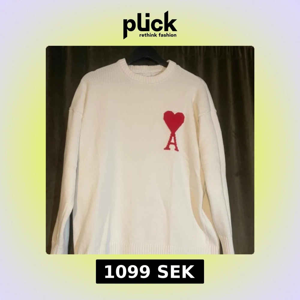 Vit stickad tröja från Ami Paris med röd hjärt- och A-detalj på bröstet. Tröjan har rund hals, ribbade muddar och lång ärm. Perfekt för dig som gillar stilrena plagg med en twist. Klassisk och snygg design som sticker ut.
