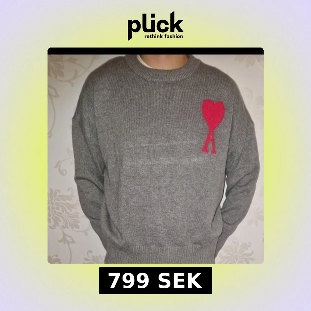 Grå stickad tröja från Ami Paris med rund halsringning och ribbade muddar. På bröstet finns ett rött hjärta med bokstaven A, vilket ger en unik och trendig look. Perfekt för dig som gillar stilrena plagg med en twist.