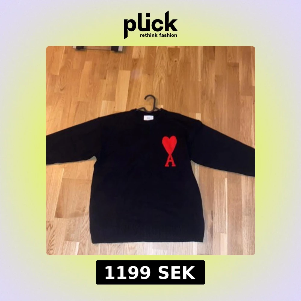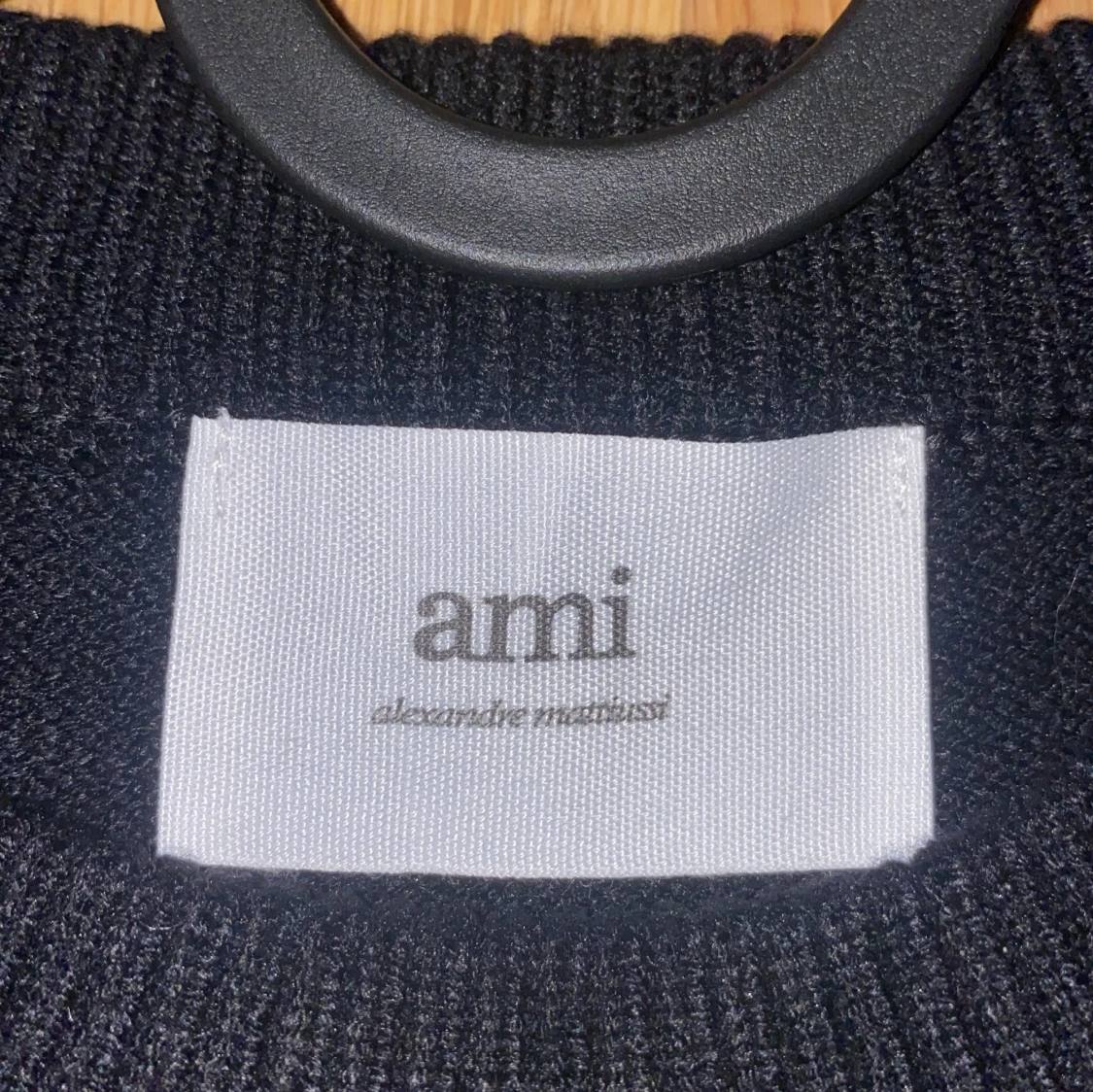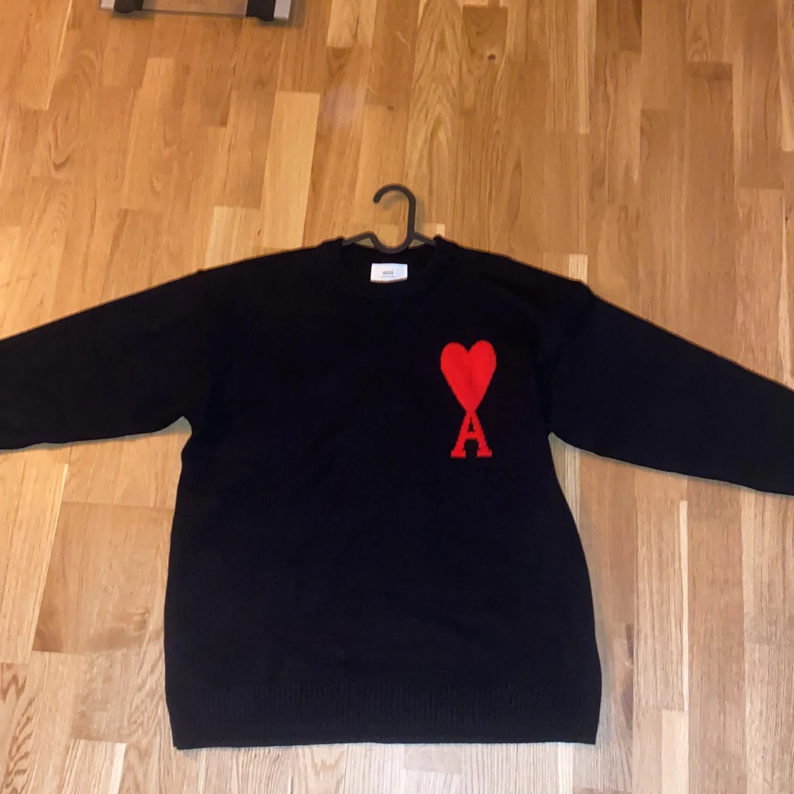 Svart stickad tröja från Ami Alexandre Mattiussi med lång ärm och rund hals. På bröstet finns ett rött hjärta och bokstaven A som broderad detalj. Perfekt för dig som gillar stilrena plagg med en twist.