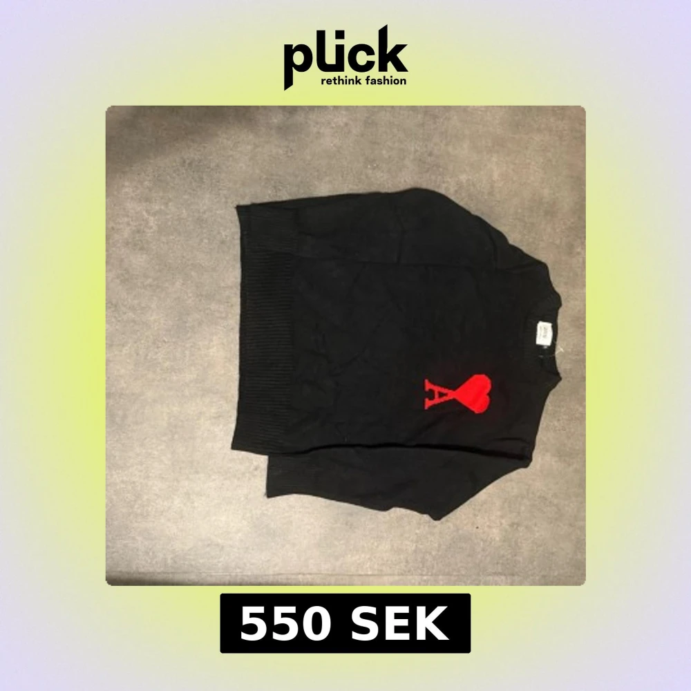 Svart stickad tröja från Ami Paris med röd hjärtlogga och bokstaven A på bröstet. Tröjan har rund halsringning, ribbade muddar och lång ärm. Perfekt för dig som vill ha en stilren men ändå unik look.