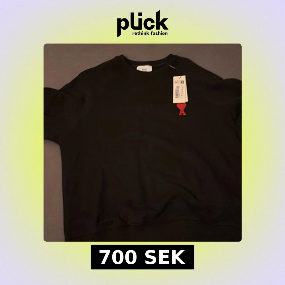 Svart sweatshirt från Ami Paris med klassisk rund hals och röd broderad Ami de Coeur-logo på bröstet. Tröjan är i mjuk bomull och har en clean, stilren look som passar perfekt till jeans eller dressade byxor.