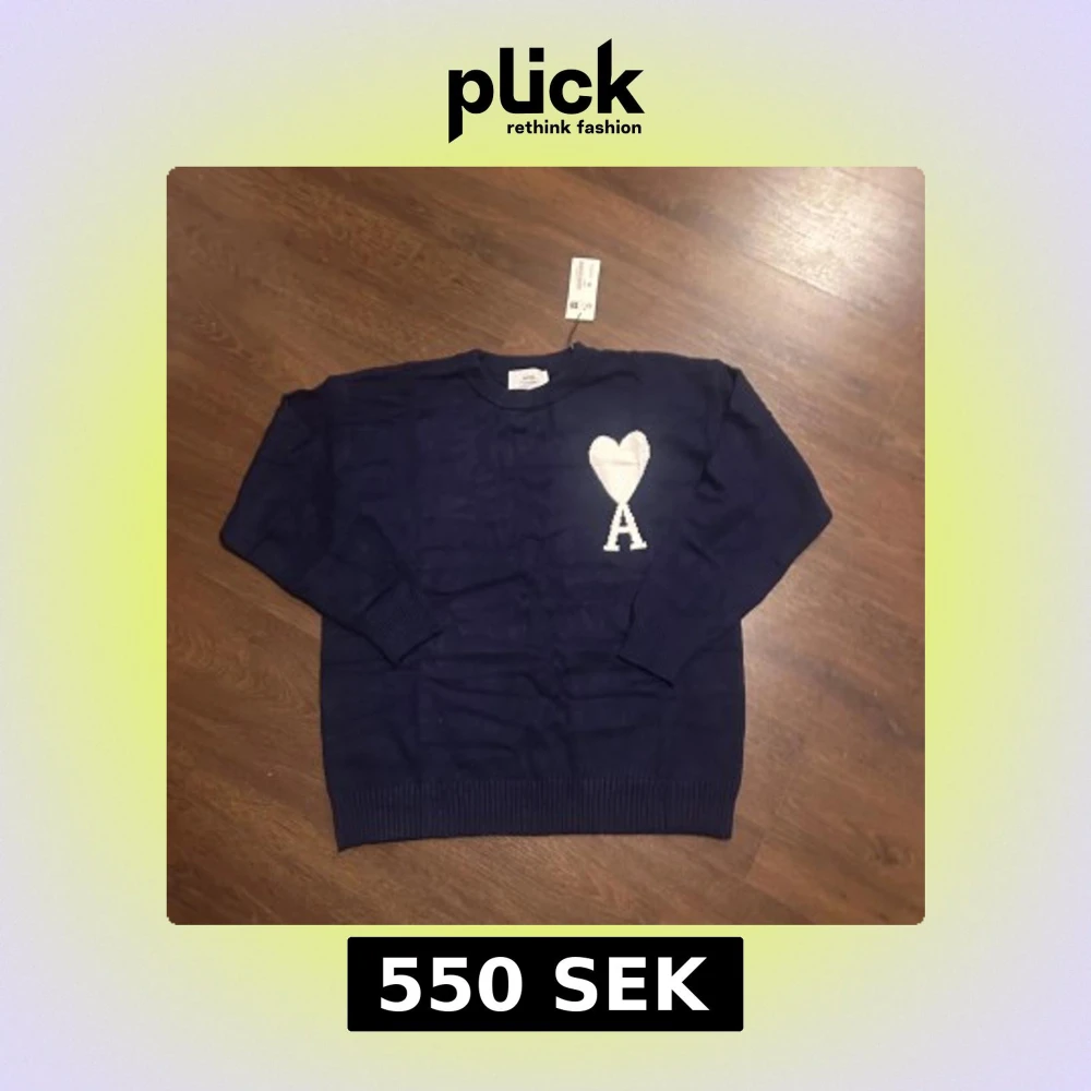 Helt ny mörkblå stickad tröja från Ami Paris med vit hjärtlogga och bokstaven A på bröstet. Tröjan har rund hals, ribbade muddar och är långärmad. Perfekt för dig som gillar stilrena detaljer och vill ha något som sticker ut.