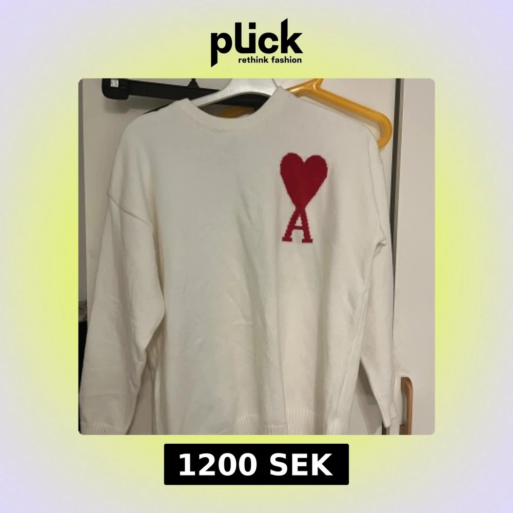 Vit stickad tröja från Ami Paris med röd hjärt- och A-logga på bröstet. Tröjan har rund hals, ribbade muddar och lång ärm. Perfekt för dig som gillar stilrena plagg med en twist.