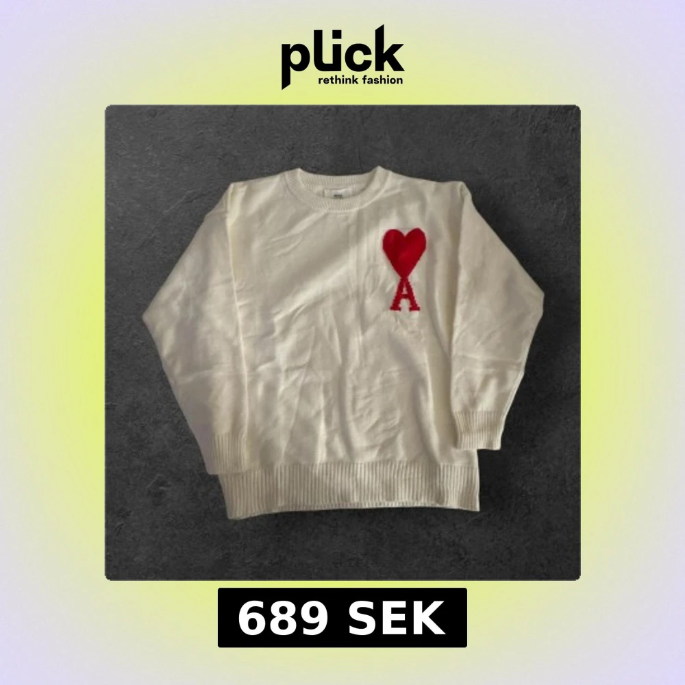Ami Paris vit/röd stickad tröja/sweater. Helt ny, storlek: S.