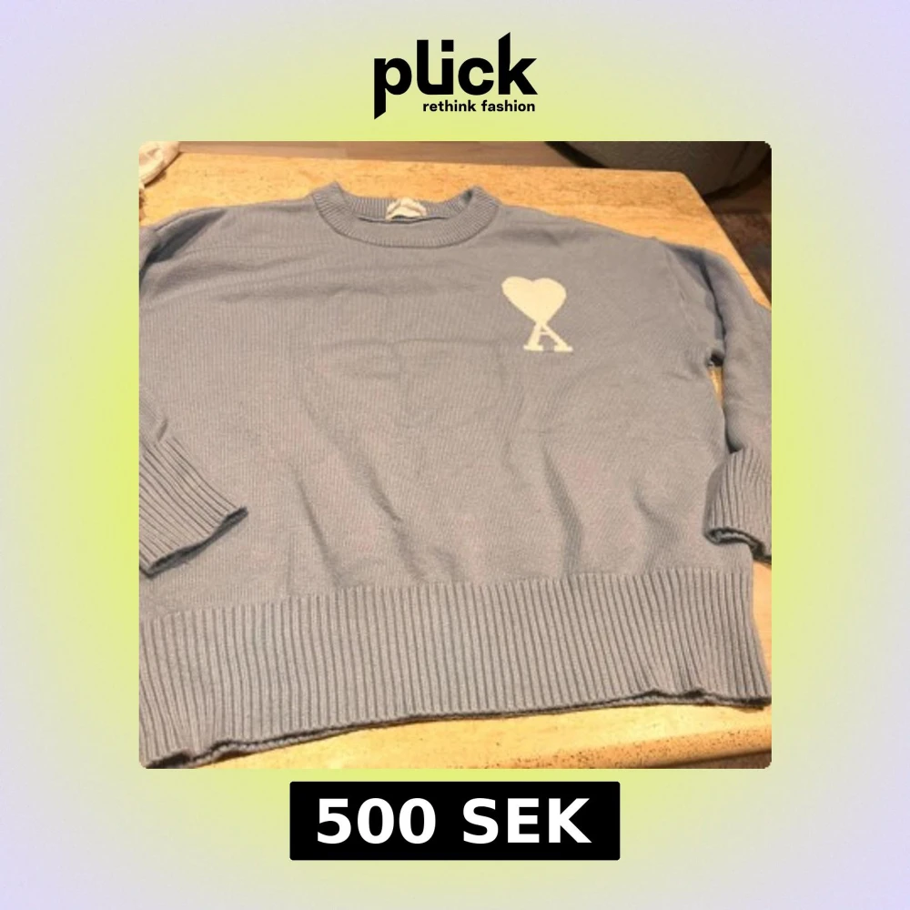 Snygg ljusblå stickad tröja från Ami Paris. Knappt använd, väldigt bra skick. Storlek S.