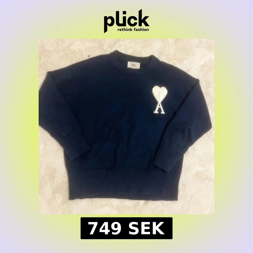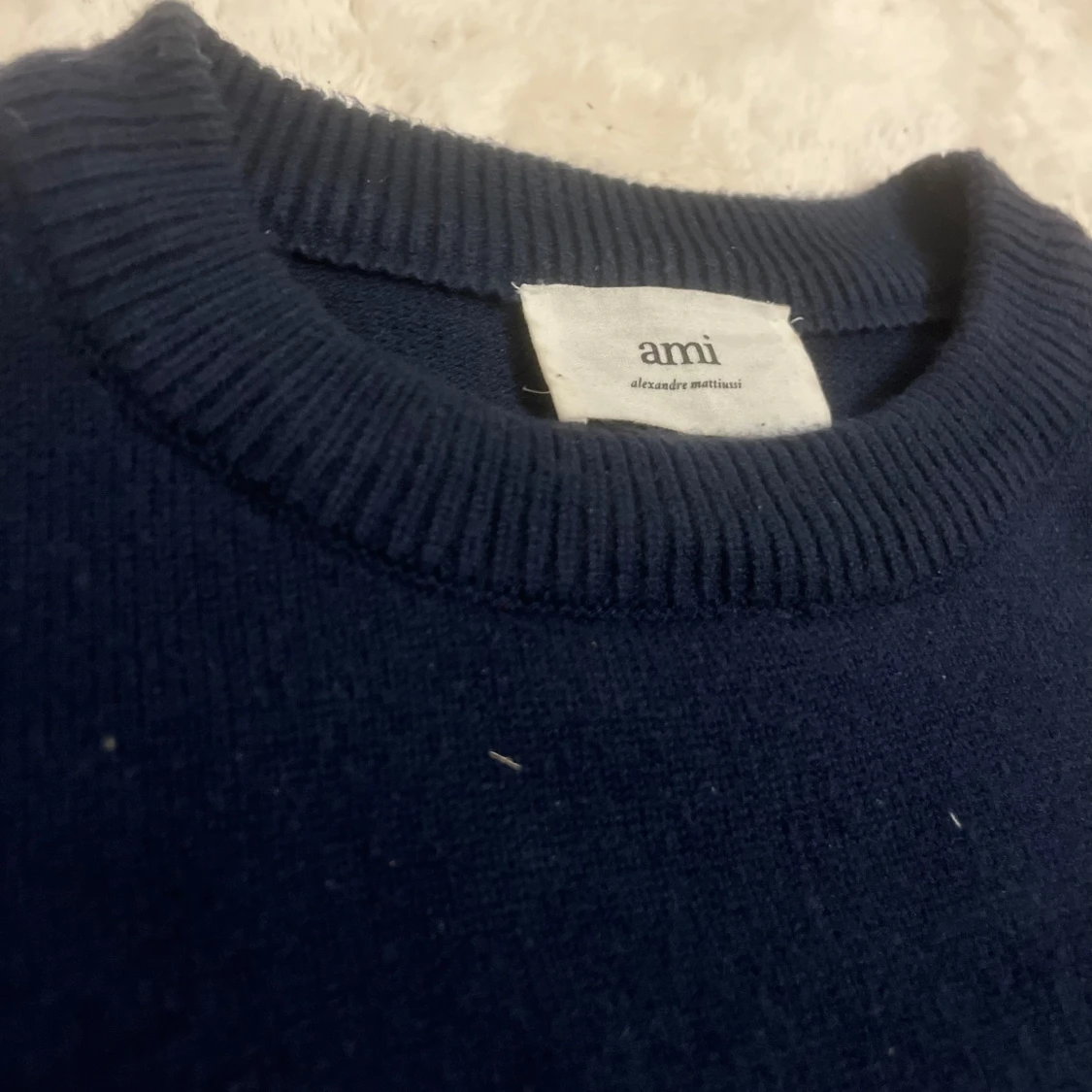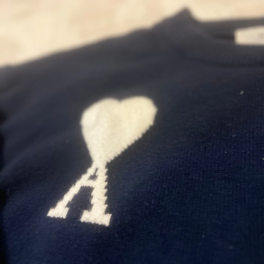 Fin Ami Paris sweatshirt mörkblå i storlek S. Bekväm passform och mjukt material, med det ikoniska hjärtloggan. I topp skick utan fläckar eller hål.