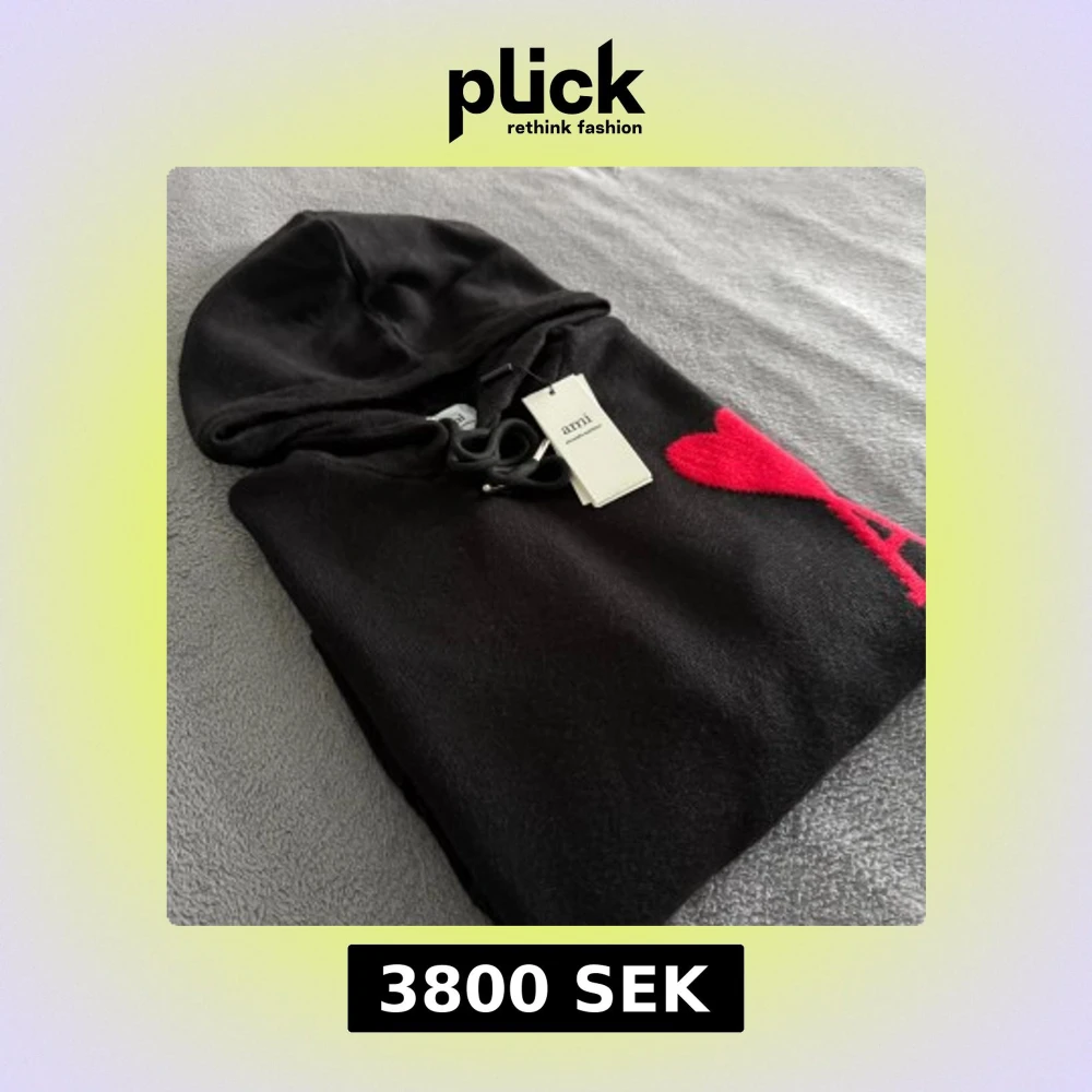 Svart hoodie från Ami Alexandre Mattiussi med stor röd hjärtapplikation och bokstaven A på bröstet. Tröjan har huva med snörning, ribbade muddar och en klassisk känguruficka framtill. Materialet är mjukt och stickat, perfekt för chill dagar.