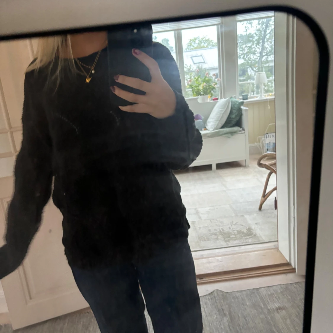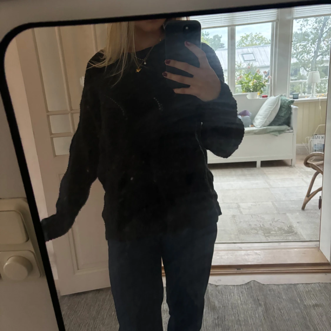 Mysig svart stickad tröja med avslappnad passform och långa ärmar. Tröjan är från Amisu i storlek M men sitter lagom på mig som brukar ha S, skriv gärna för fler frågor eller bilder💓