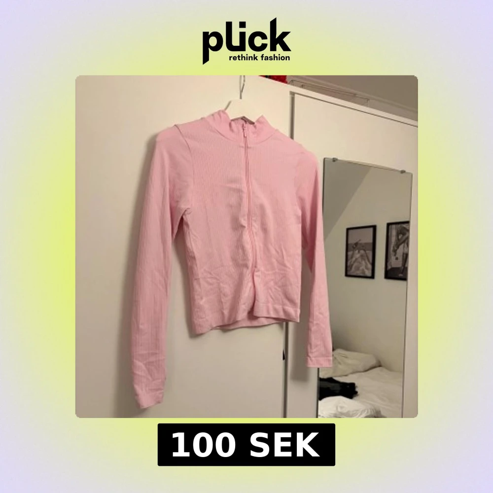 Supersöt ljusrosa ribbad tröja med dragkedja hela vägen framtill. Tröjan har lång ärm och en smal passform som sitter snyggt. Perfekt att slänga på sig över ett linne eller t-shirt. Enkel och stilren design som passar till det mesta.