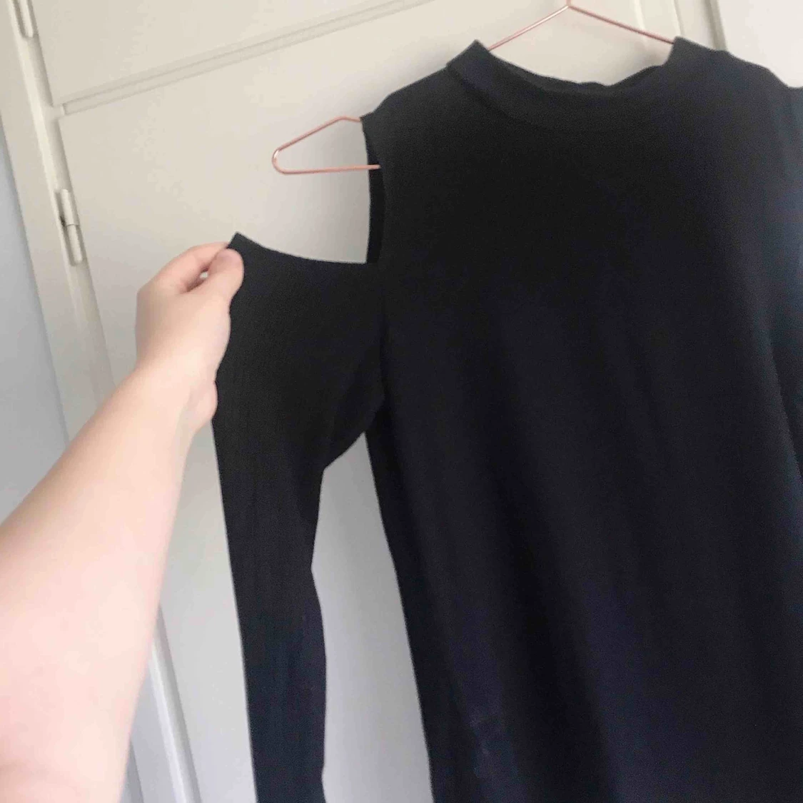 En svart ribbad skön tröja men bara axlar, storlek xs, bra kvalité, knappt använd💕💕 köparen står för leveranskostnader ☺️
