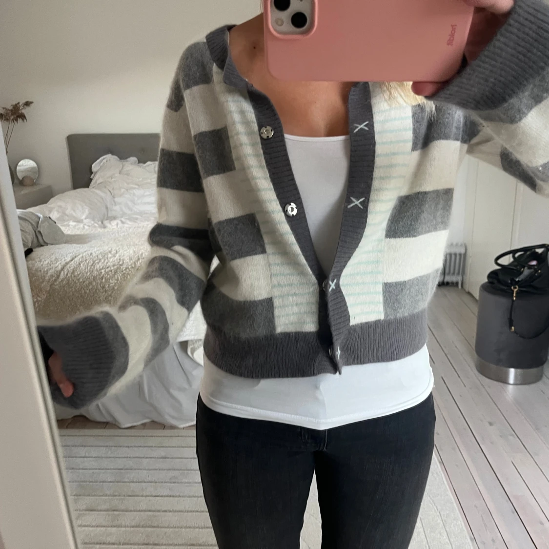 Supermysig kofta i grått och vitt. Koftan är såå skön och mjukare en kashmir❤️❤️