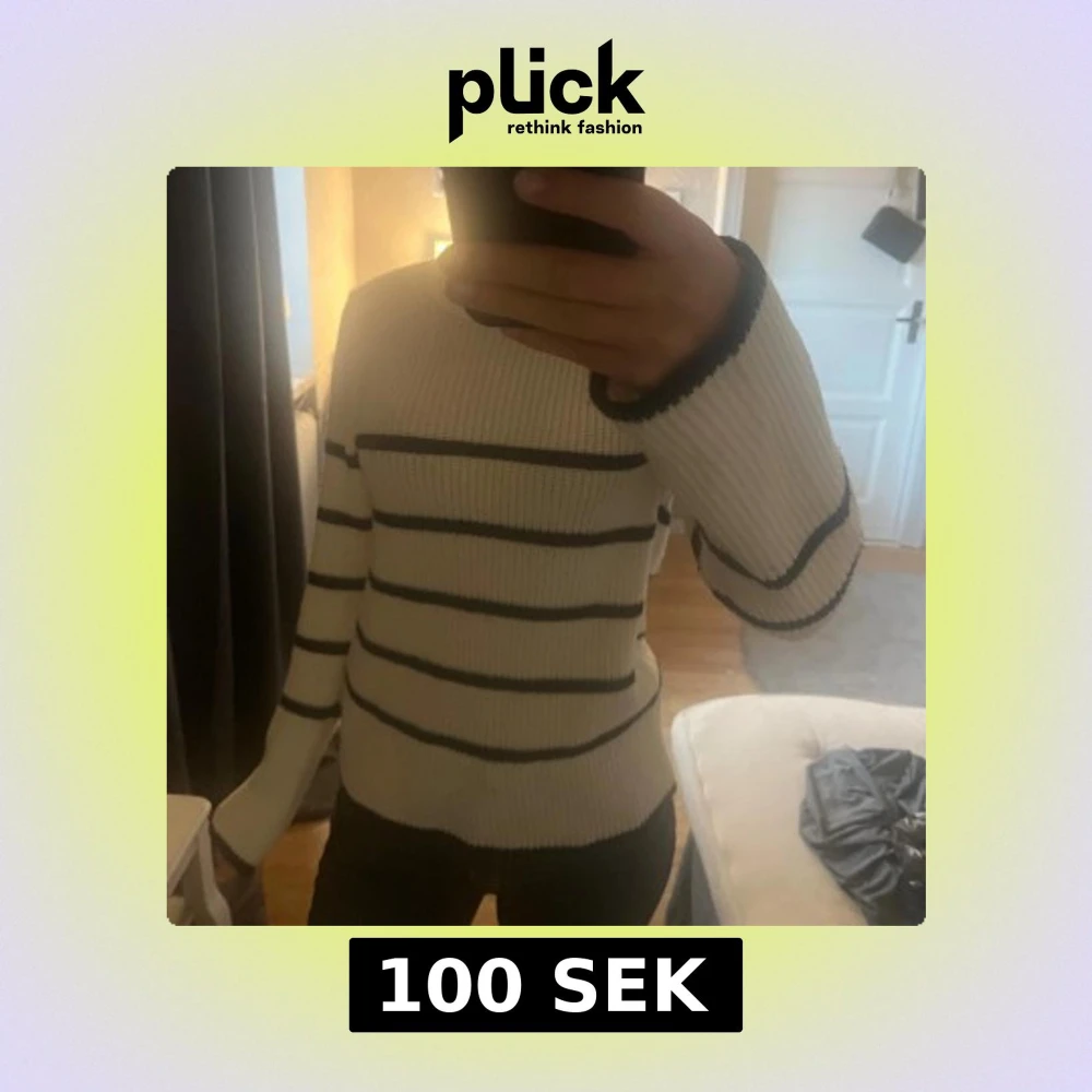 Säljer en vit stickad tröja från Anna Field i storlek XS. Tröjan har svarta horisontella ränder, rund hals och långa ärmar. Den är ribbstickad och har en klassisk, lite loose passform som är superenkel att styla till jeans eller kjol. Den har används fåtal gånger men har ett hål i armhålan på tröjan 💞