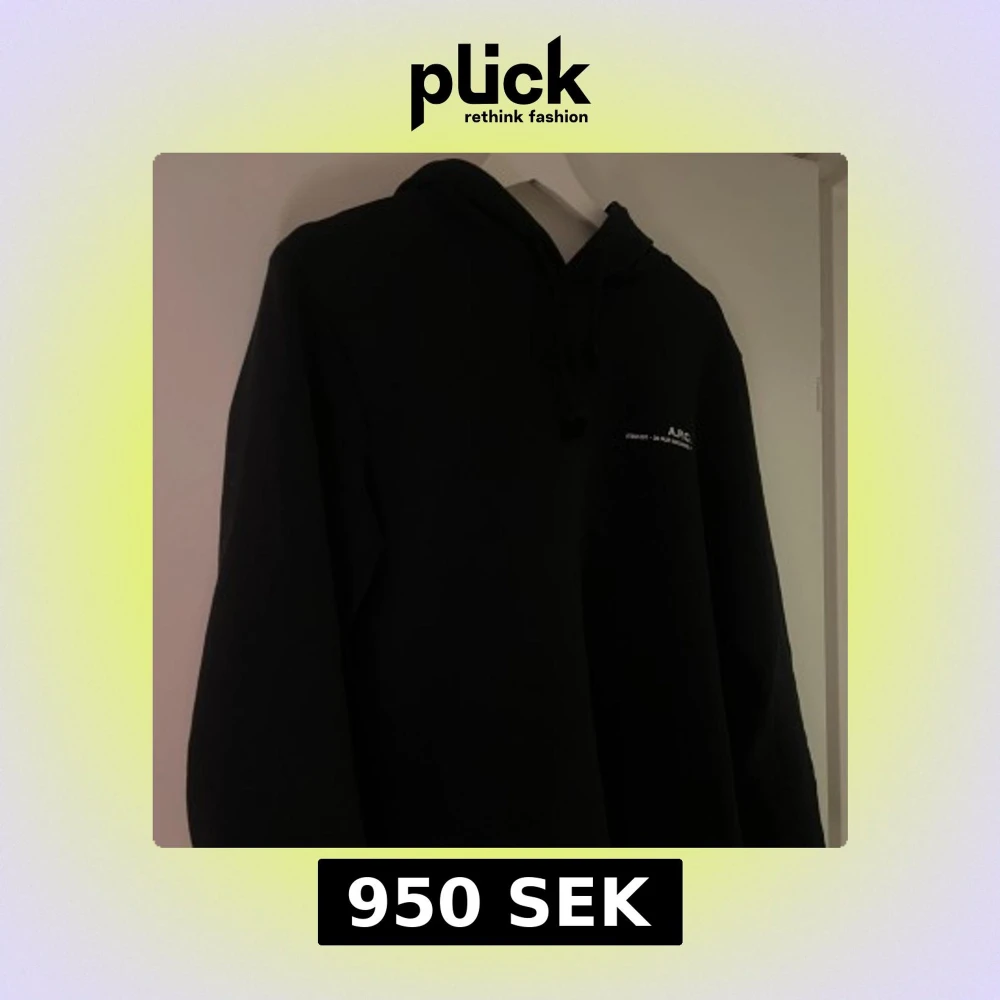 Snygg svart hoodie från A.P.C. med vit text på bröstet. Tröjan är i bra sick.
