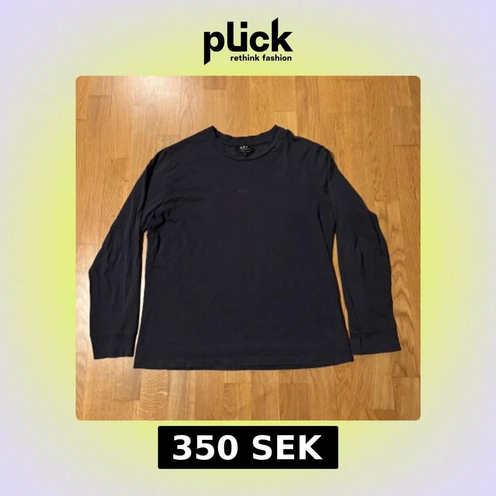 Säljer en stilren mörkblå långärmad tröja från A.P.C. i mjuk bomull. Tröjan har rund halsringning och diskret A.P.C.-logga framtill. Perfekt för dig som gillar minimalistisk och clean stil.