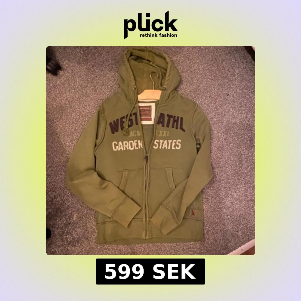 Olivgrön hoodie med dragkedja från Angelo Litrico. Tröjan har broderad text på bröstet, huva med snörning och två fickor framtill. Perfekt för en avslappnad stil och enkel att matcha med jeans eller joggers.