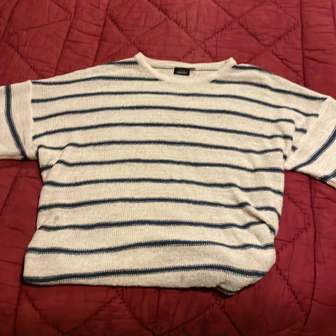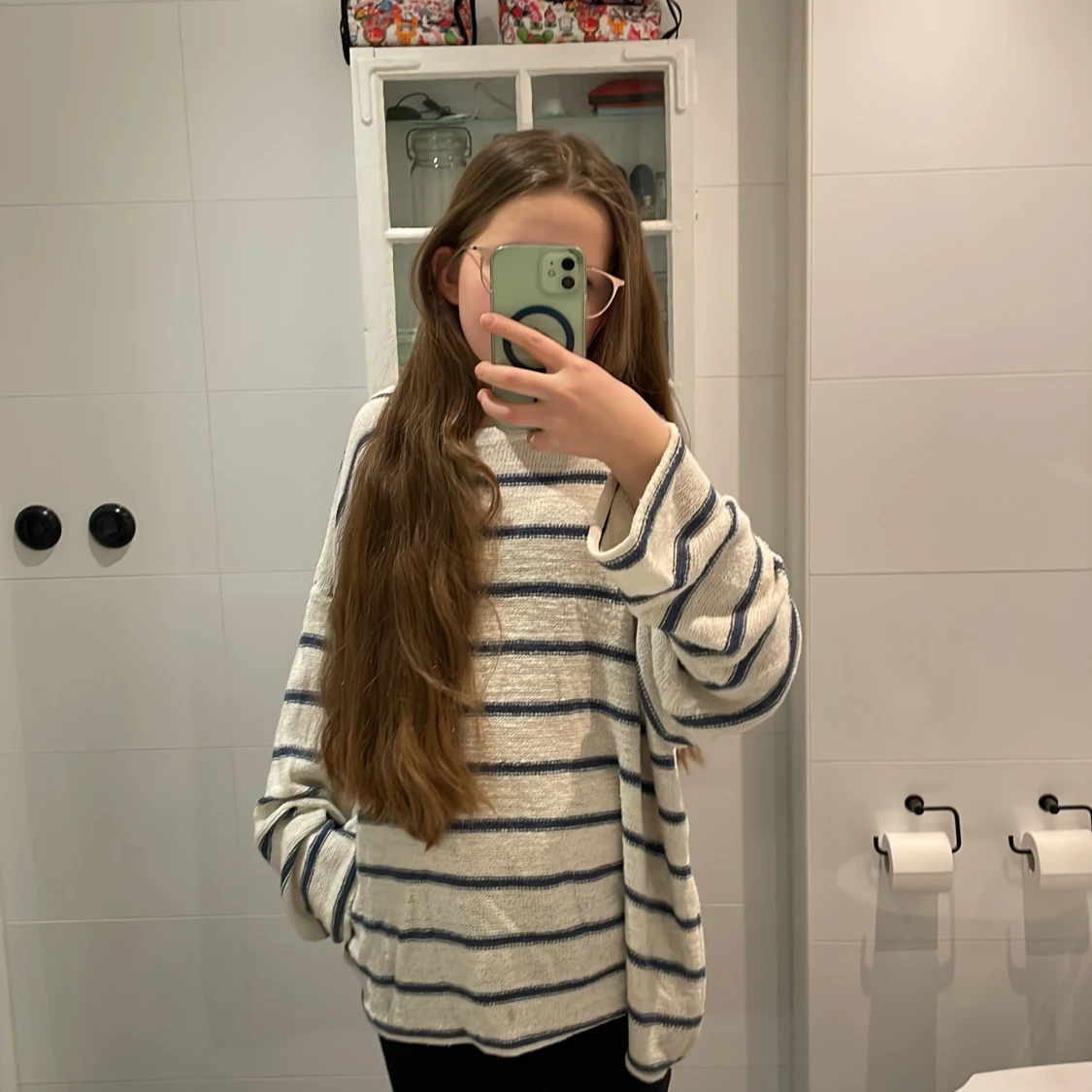 Säljer en mysig randig overzise tröja från KappAhl i vitt och blått. Tröjan har en loose passform och är långärmad, perfekt för en avslappnad stil. Den är tillverkad i ett stickat material som ger en skön känsla. Perfekt för kyligare dagar! Skrev 38 i storleken men passar alla😊