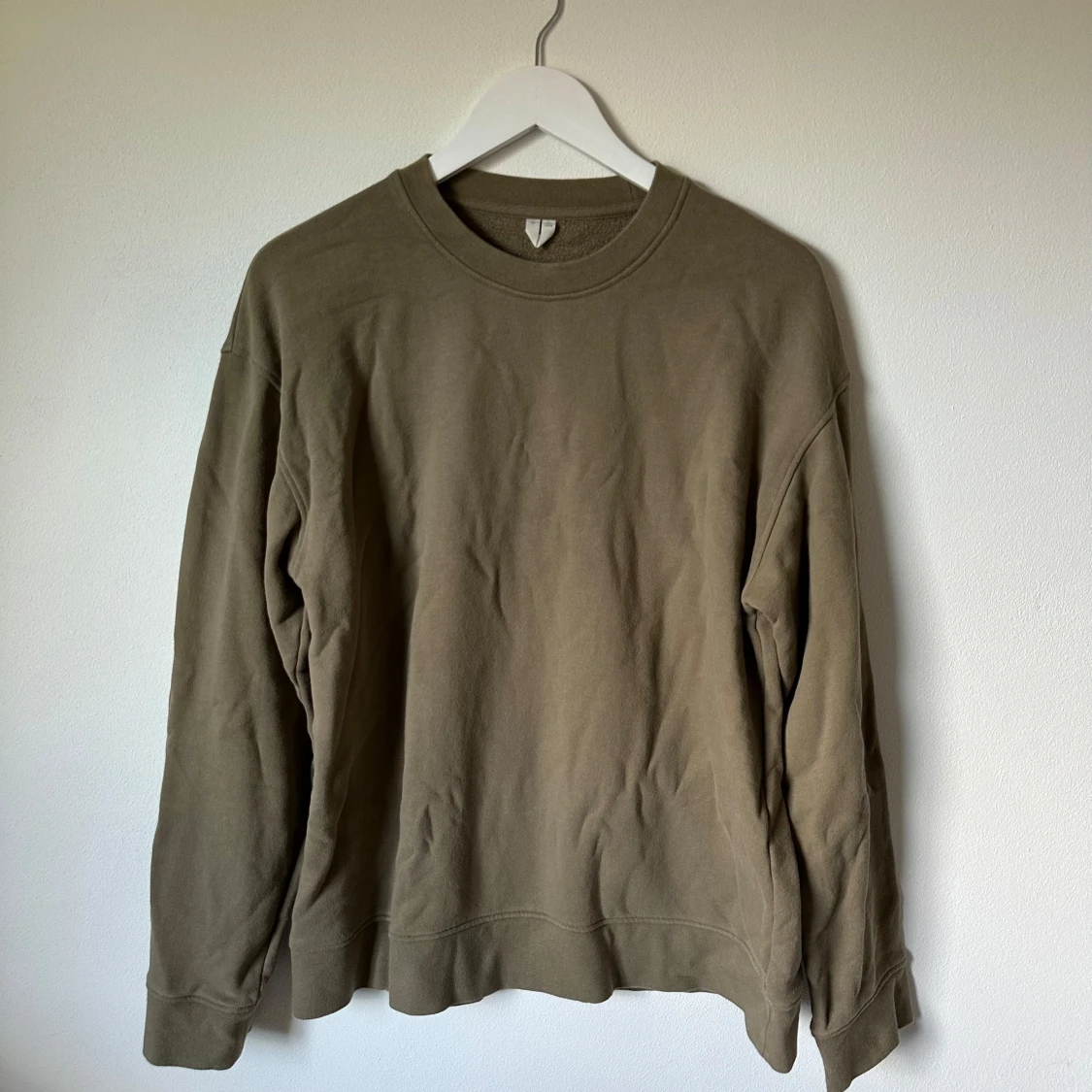 Enkel och stilren olivgrön Arket sweatshirt i 100% bomull. Tröjan har rund halsringning, långa ärmar och en relaxed passform. Perfekt för lager-på-lager och chill dagar. Snygg att matcha med jeans eller joggers. 3V14