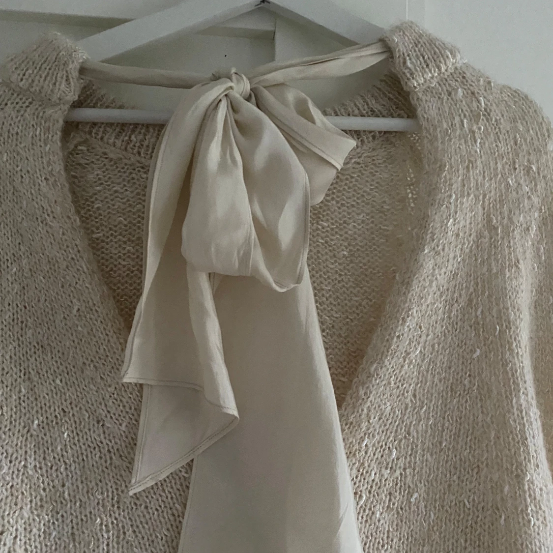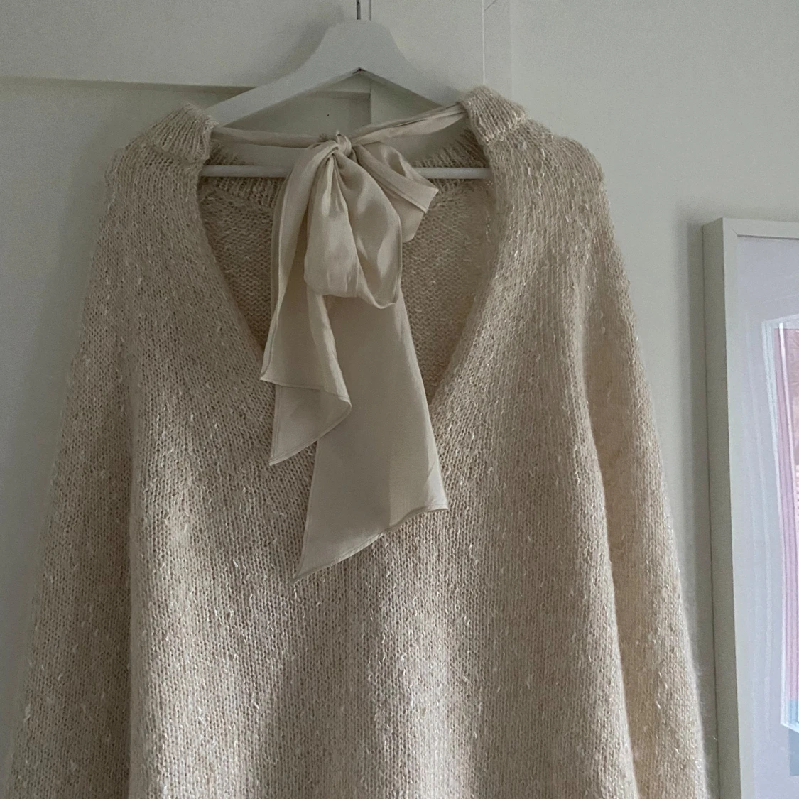 Stickad Tröja med långa ärmar och en lös passform. Med knytning baktill