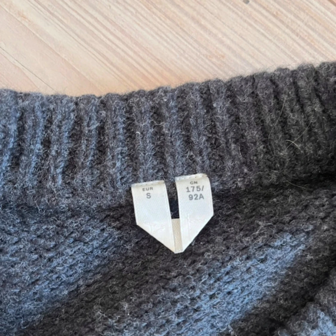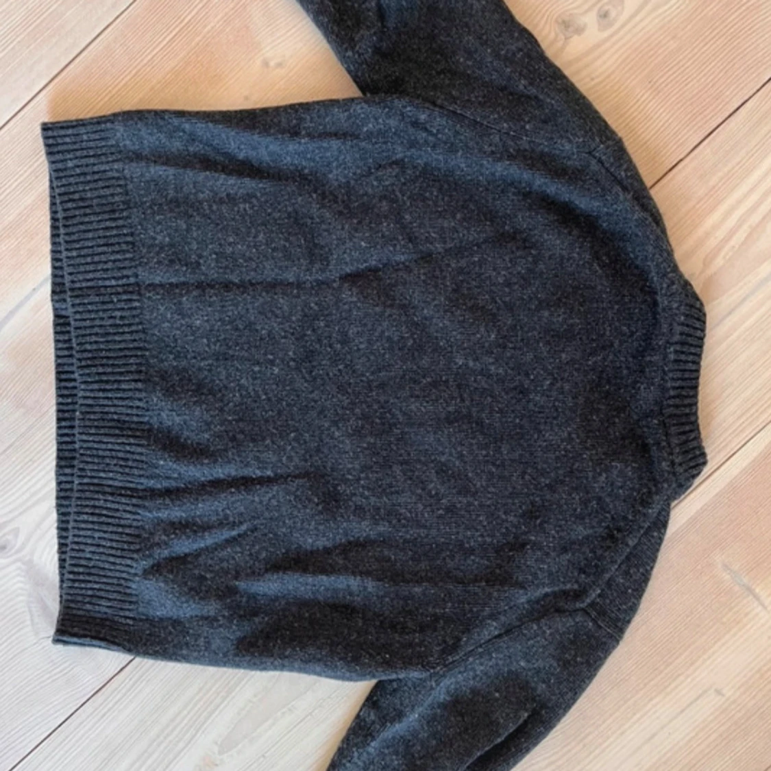 Mysig mörkgrå stickad tröja från Arket i storlek S. Tröjan har en klassisk rund halsringning och ribbade muddar vid ärmslut och nederkant. Perfekt för lager-på-lager under kyliga dagar och enkel att matcha med. Hör av er vid minsta lilla fundering😁