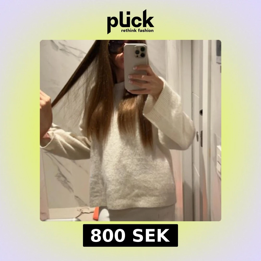 Mysig vit stickad tröja med breda, långa ärmar och avslappnad passform. Perfekt för lager-på-lager och chill dagar. Enkel och stilren design som funkar till det mesta. Snygg att matcha med jeans eller kjol.
