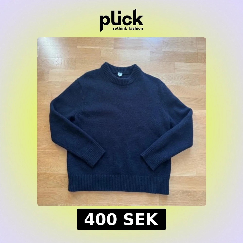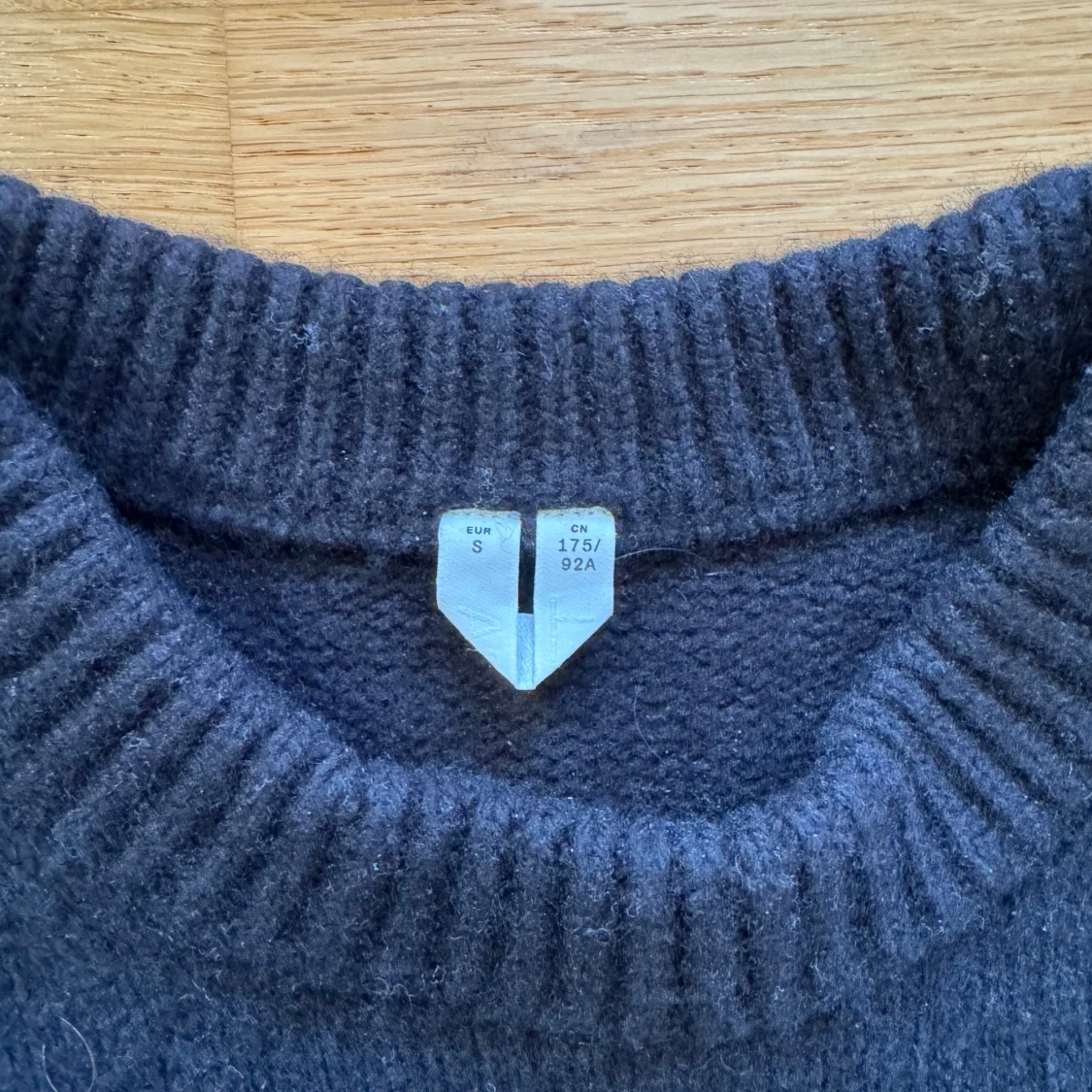 En klassisk svart stickad tröja i ull med rund hals och breda ribbade muddar vid ärmslut och nederkant. Perfekt för kyliga dagar och enkel att matcha med jeans. Snygg och tidlös modell som passar till många olika stilar.