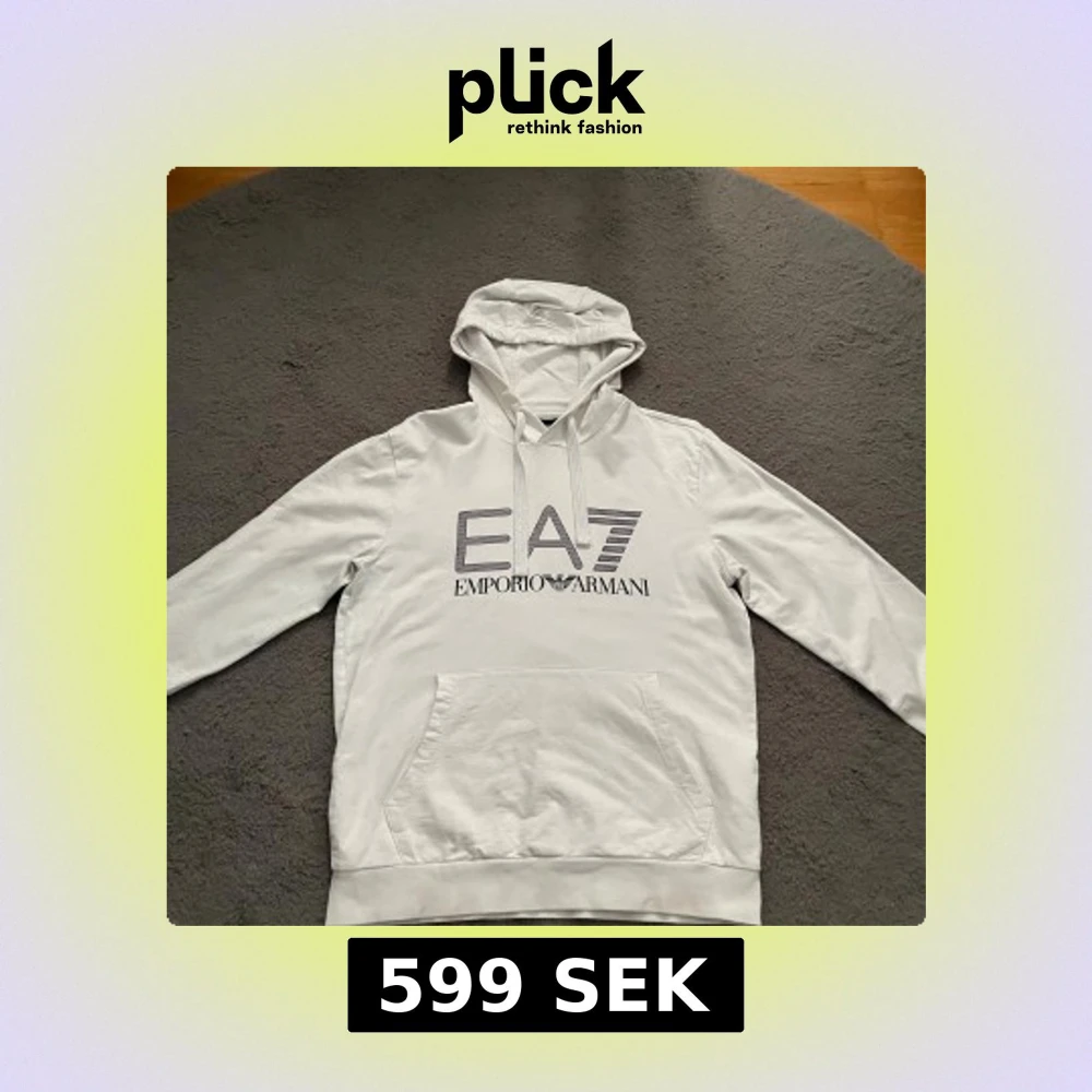 Snygg vit hoodie från Emporio Armani EA7 med stor logga framtill. Tröjan har huva med dragsko, känguruficka och långa ärmar. Tillverkad i mjuk bomull som känns skön mot huden. Perfekt för en clean och stilren look.