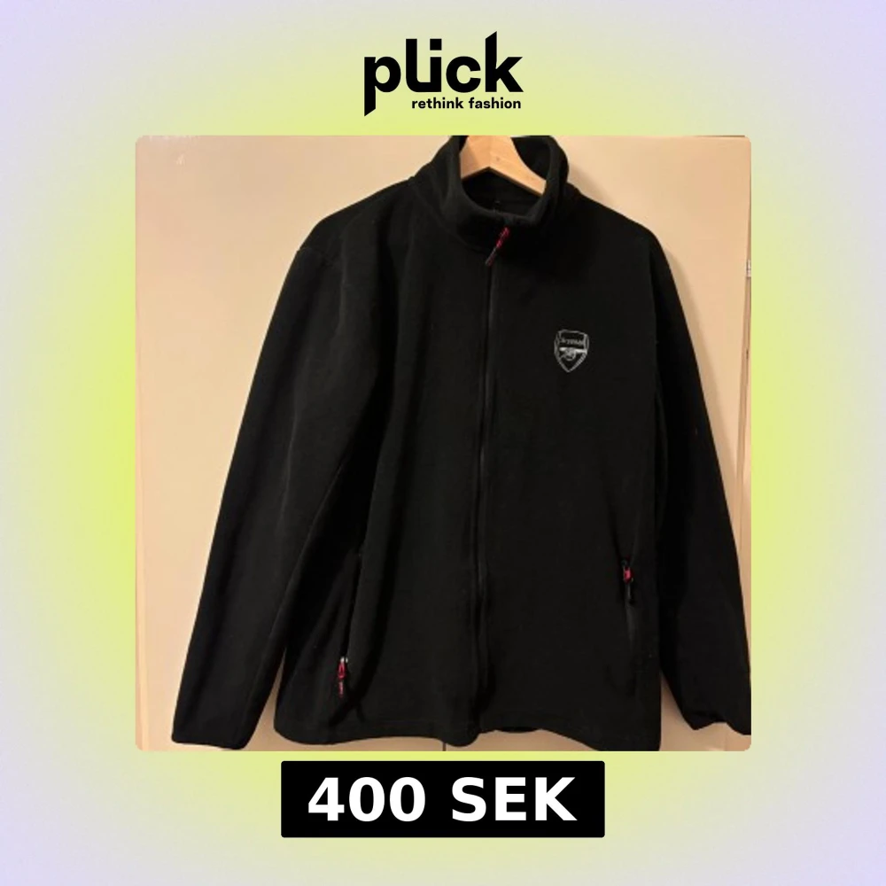 Svart fleecejacka från Arsenal med klubbens logga på bröstet. Jackan har hel dragkedja framtill, två sidofickor med röda detaljer och hög krage. Köpt från Arsenals hemsida