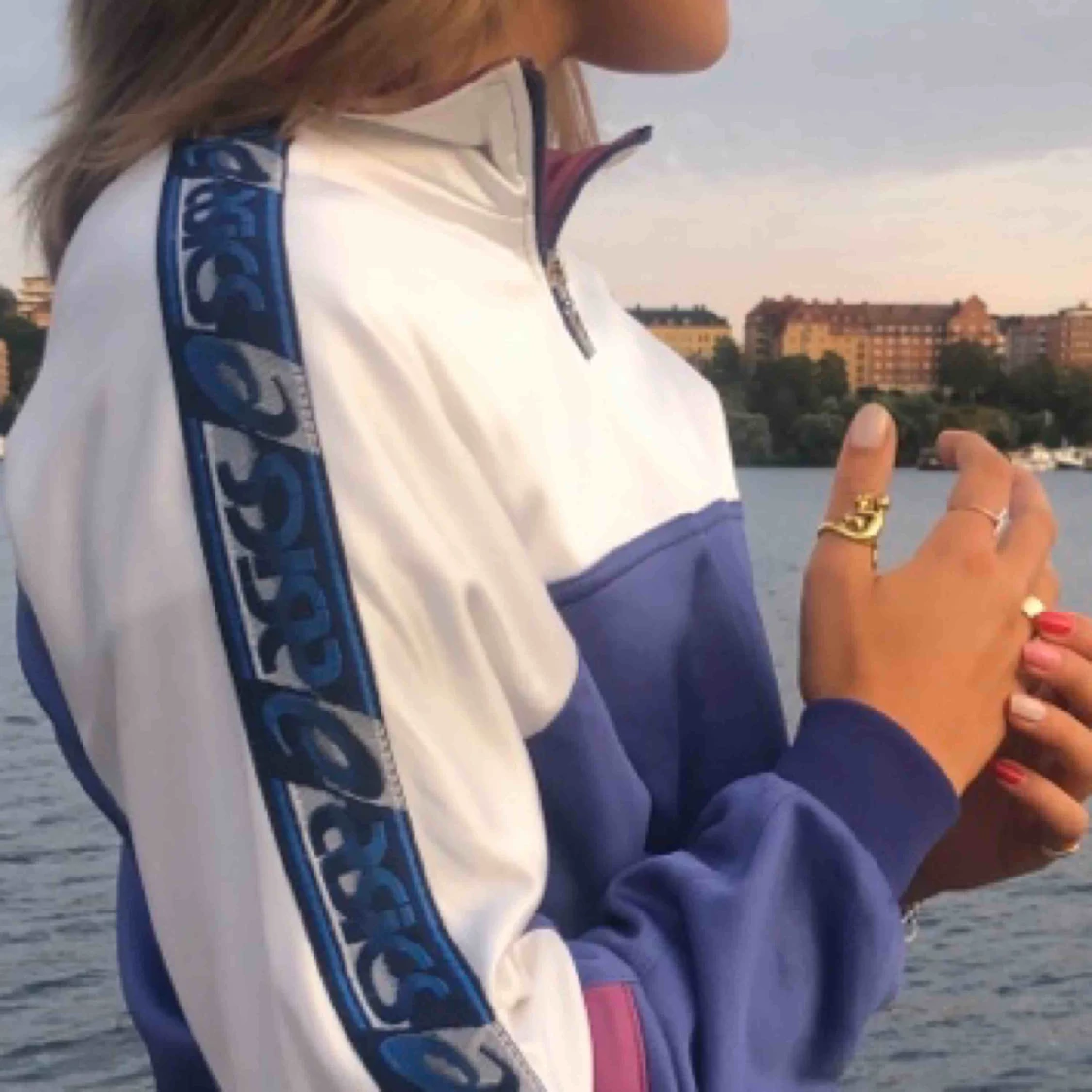Jättecool tröja från asics i storlek s/m, skulle säga en stor s i snudd på M💕 thriftad men i bra skick!💚 frakt tillkommer!