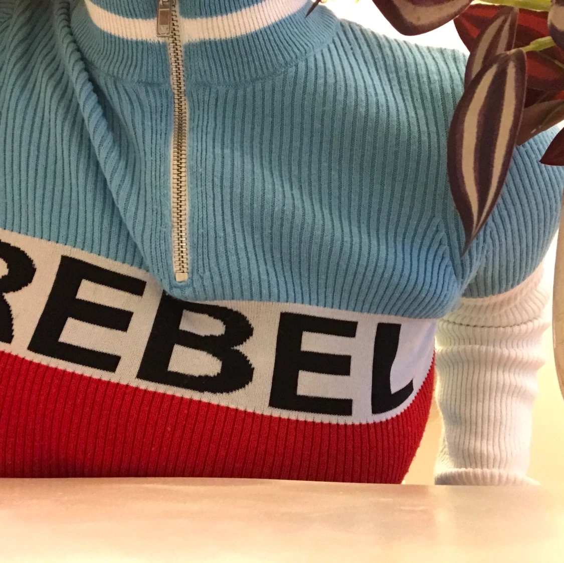 Burit en gång, mjuk och multifärgad med REBEL tryck på, köpt från ASOS!