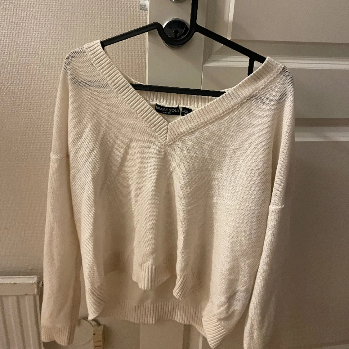 Creme färgad stickad tröja, använd men inte i dåligt skick💞