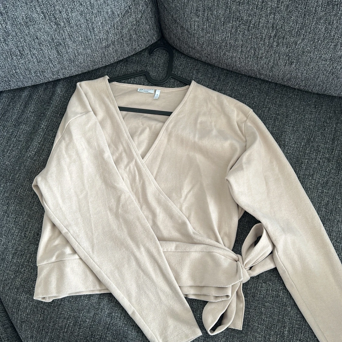 Jättesöt omlottkofta i beige från Asos Design! Jättemjukt material! Storlek m men kan sitta som S också! Aldrig använt!