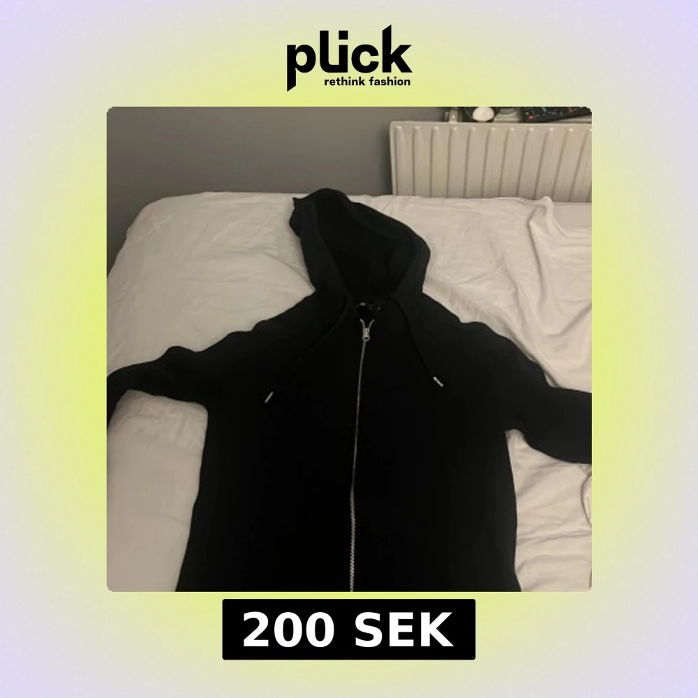 Svart hoodie med hel dragkedja och huva. Klassisk modell med snörning i huvan och långa ärmar. Perfekt för chill dagar eller när du vill ha en enkel och stilren look.
