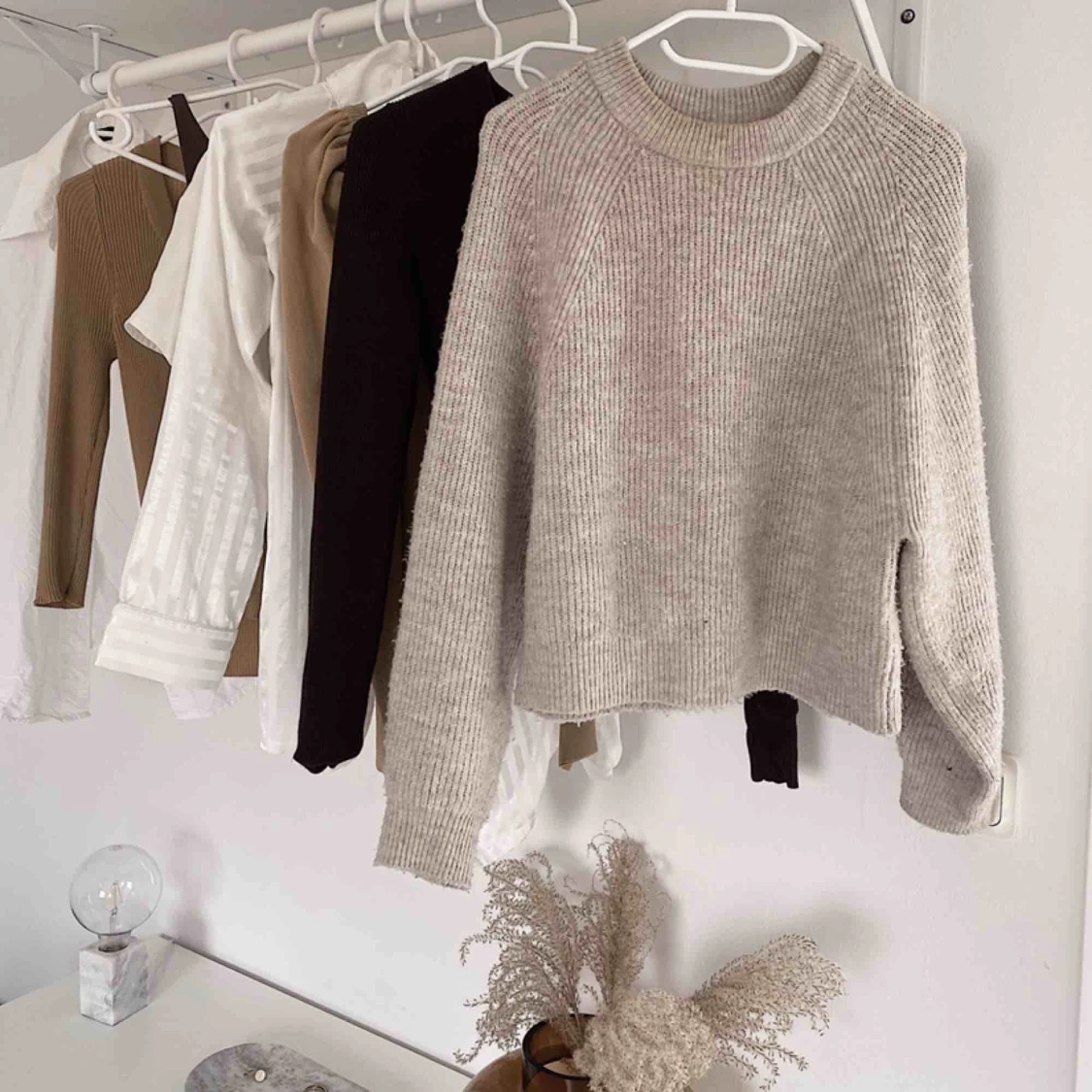 Superskön beige stickad tröja! Nyskick, knappt använd! Passar upp till M beroende på hur man vill att den ska sitta!