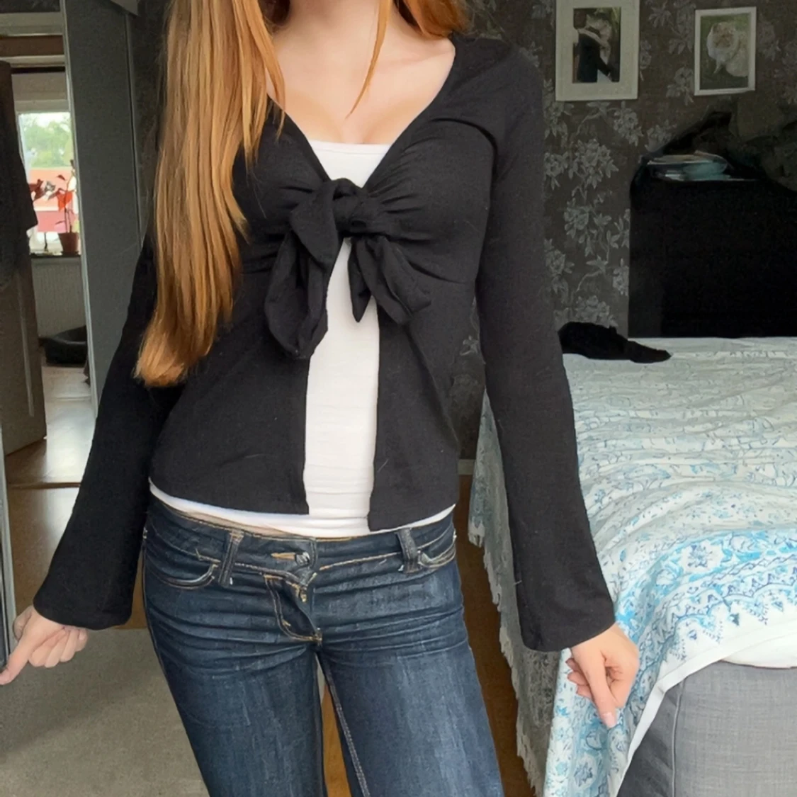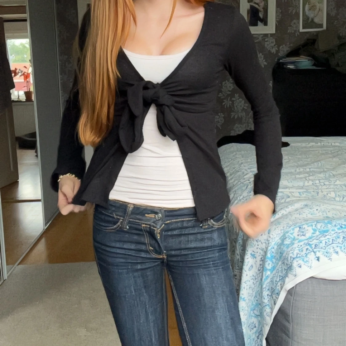 Säljer en svart kofta med lång ärm och snygg knytning framtill. Koftan har en figurnära passform och är perfekt att både ha över ett linne eller utan. Enkel och stilren design som passar till allt. Köpt för 250 från Gina tricot.