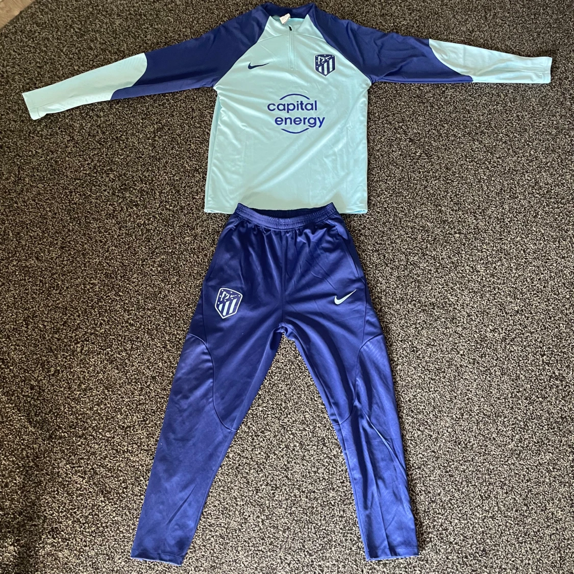 Säljer denna jävligt snygga atletico Madrid tracksuiten eftersom den ej kommer till användning. Skick 10/10 ej använd. Storlek L slim fit. Pris går att diskuteras