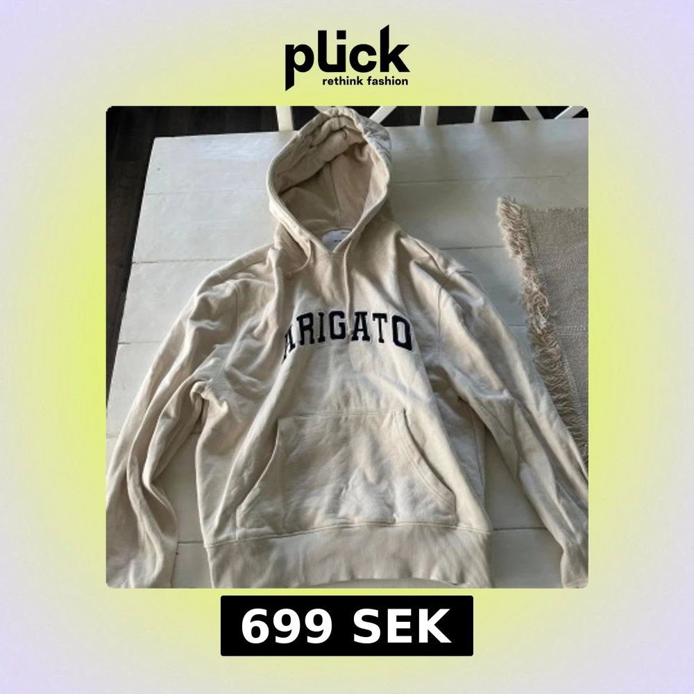 Säljer en beige hoodie från Axel Arigato med svart broderad text på bröstet. Tröjan har huva med snörning, stor magficka och ribbade muddar vid ärmslut och nederkant. Perfekt för chill dagar och enkel att matcha med jeans eller joggers. Osäker på storlek men tror det är en M.