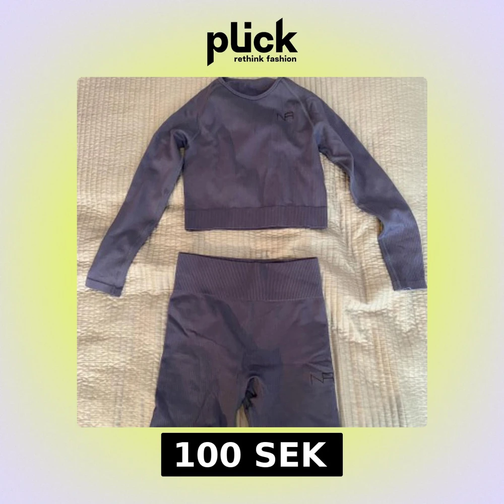 Säljer en snygg lila ribbad träningströja och short från NA. Perfekt för gymmet eller en aktiv dag.