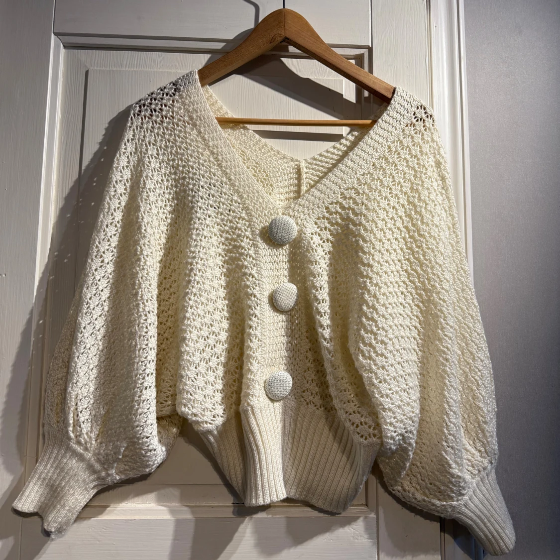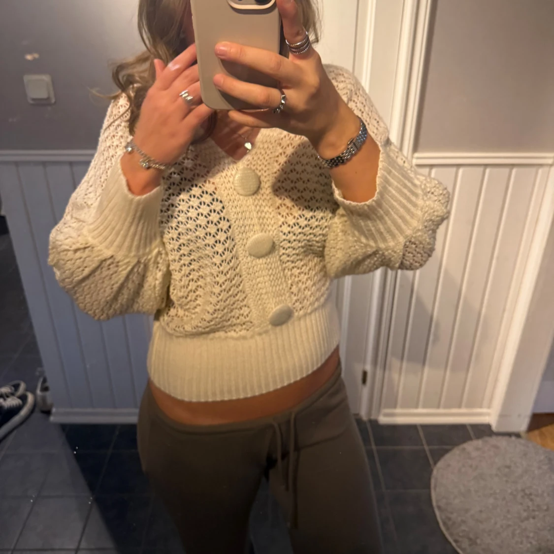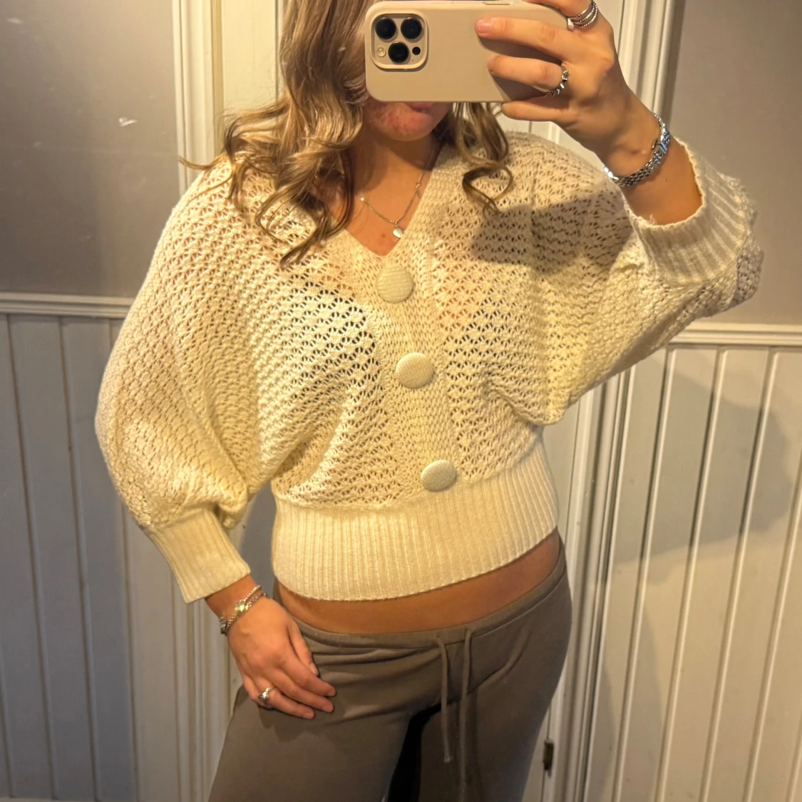 Skitsnygg virkad kofta ifrån Giali med stora knappar. Knappt använd och svin bra kvalité❣️den har ballong och trekvartsärm!