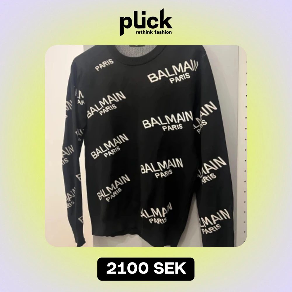 Säljer en balmain tröja i svart, sitter bra och är 174. Kanppt använd. Bild på kvitto finns.