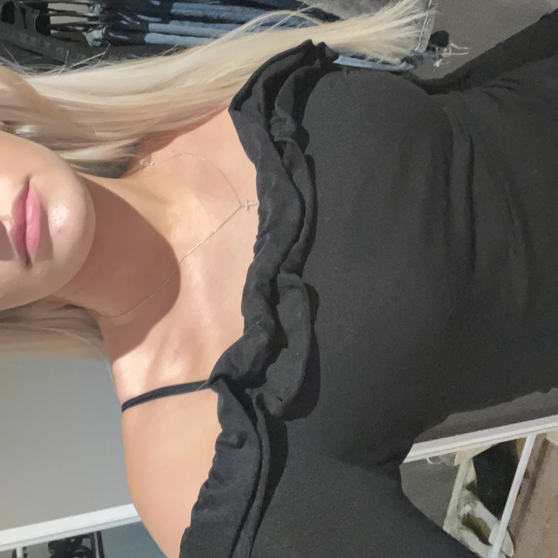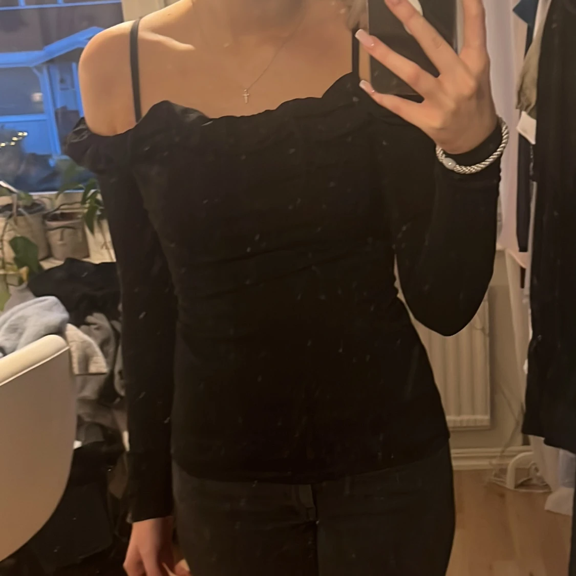 En svart offshoulder topp från Nelly med lite volanger upptill i strl S!
